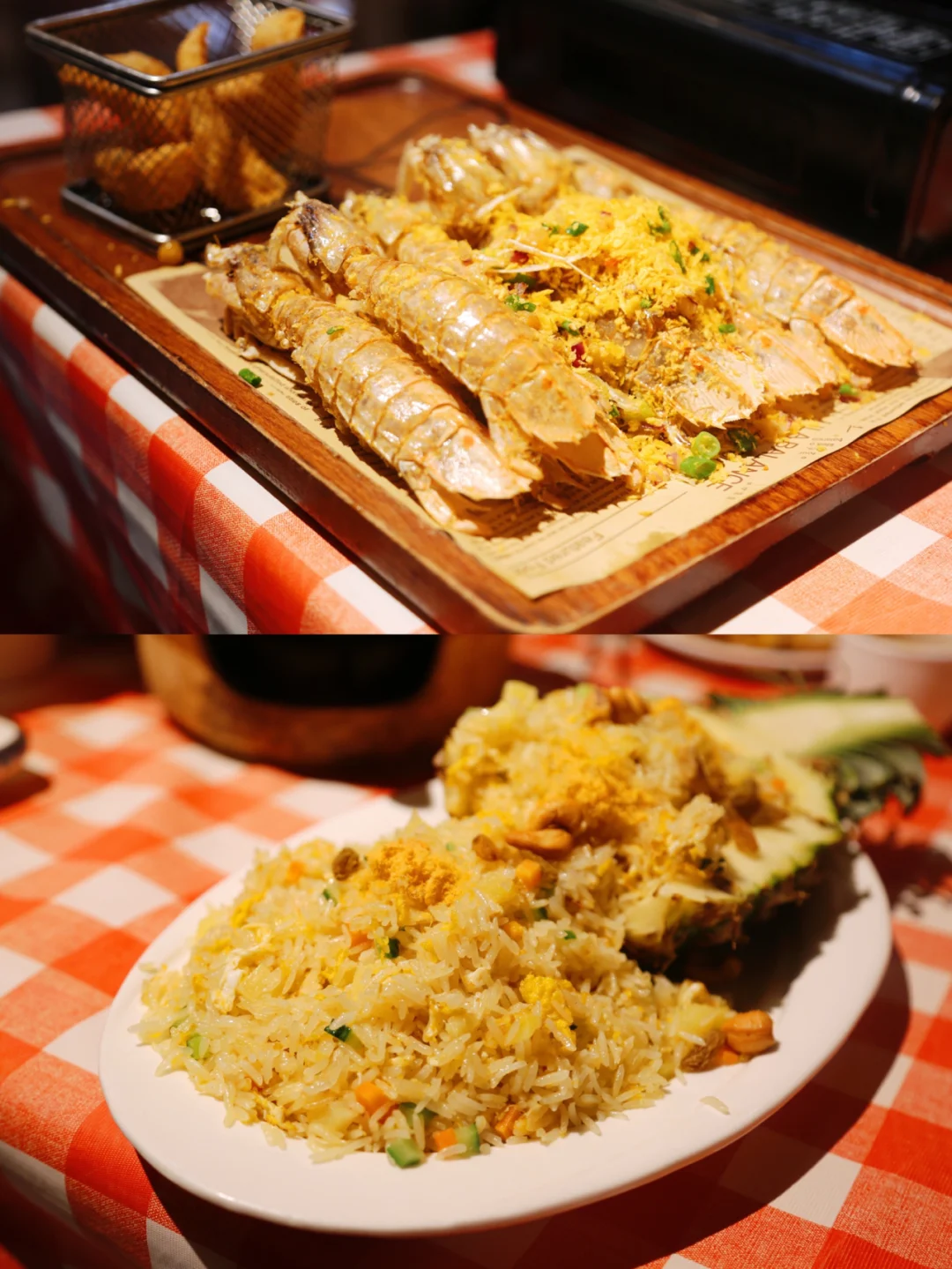 ✔️除了这些,必点🍍菠萝饭,里面菠萝、腰果这些都很实在,还有蒜蓉开背蒸龙虾🦞,避风塘炒和乐蟹🦀️都很好吃,点了绝对不得后悔!