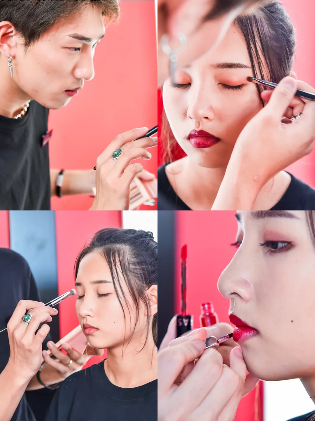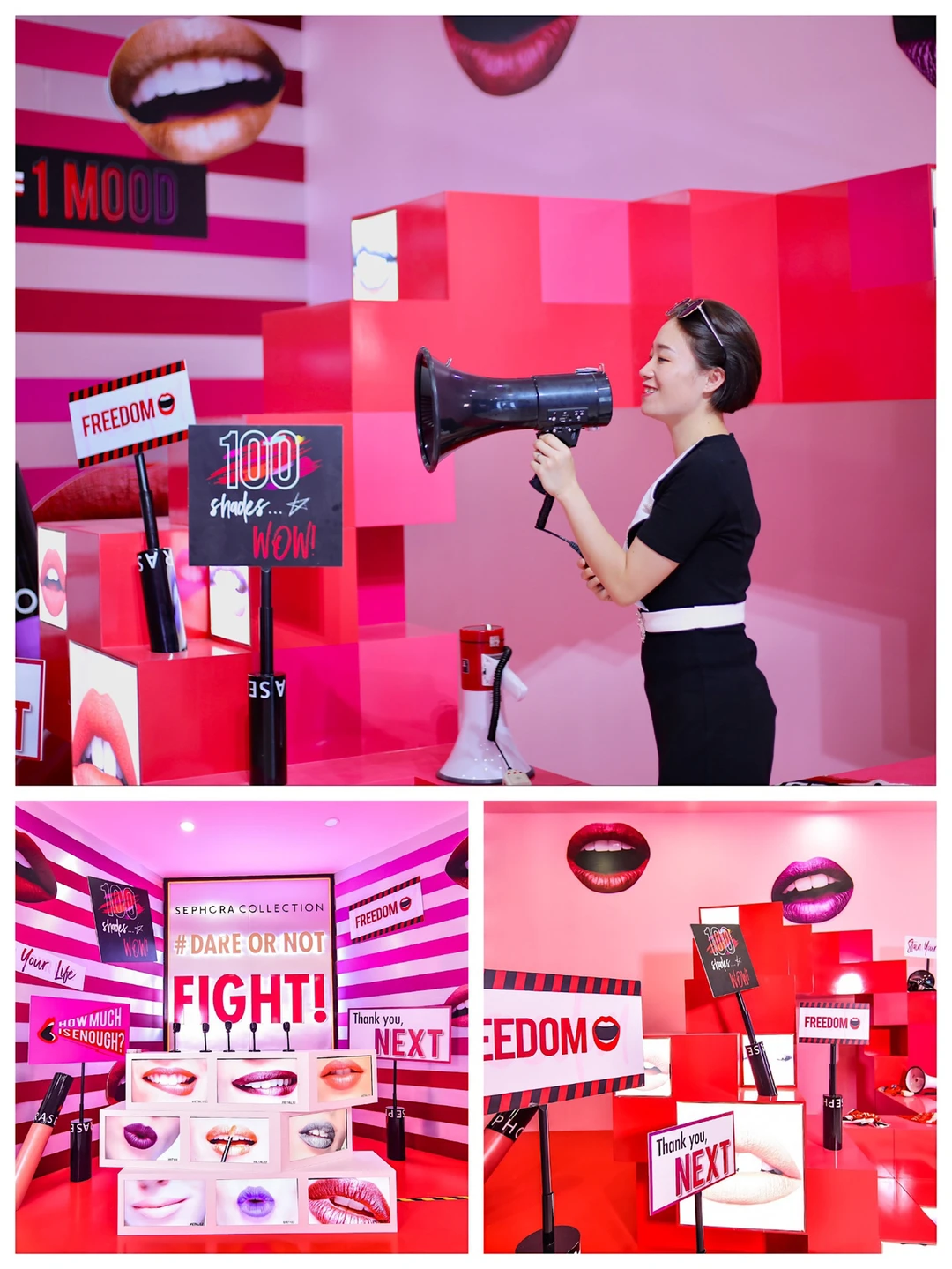 各种颜色的唇印涂鸦在拍摄区的各个地方,像新闻发布会的现场,拍出在镜头前采访的戏码,各种灯光道具多到用不过来。