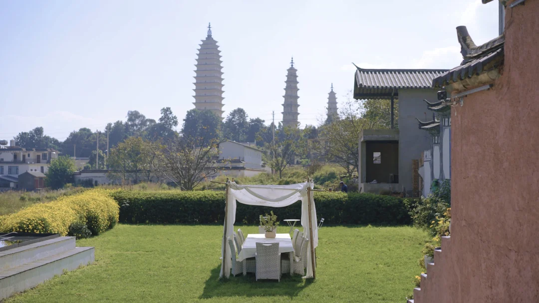 民宿位于崇圣寺三塔旁边,2⃣️层小楼,典型的白族建筑,整体是白色,在蓝天白云下显得很小清新,门口是一个大院子,有泳池、草坪、吊床、秋千和躺椅等等,不出去玩的时候,在民宿里就能打发时间,而且特别适合拍照📷,在院子里就能看到崇圣寺三塔,没有任何遮挡‼️
