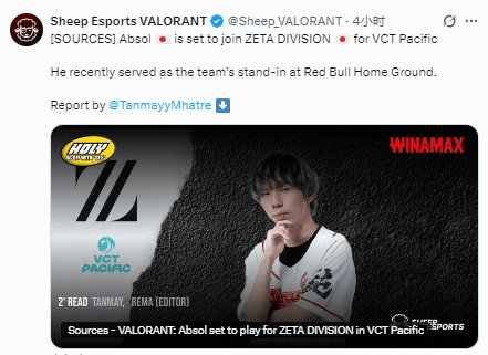 虎扑11月26日讯外媒爆料:红牛杯ZETA替补Absol将正式加入,征战2026赛季