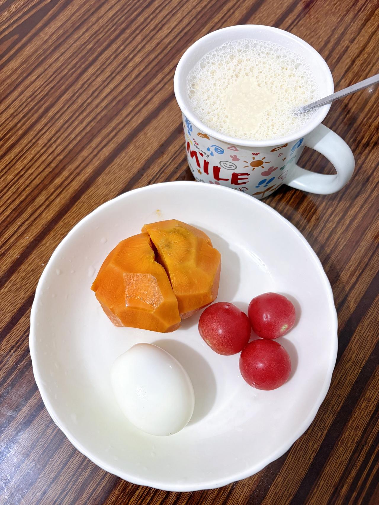 泪水打湿我的减脂餐,发誓瘦到105斤,加油 今日减脂早餐:红薯+豆浆+番茄+鸡蛋