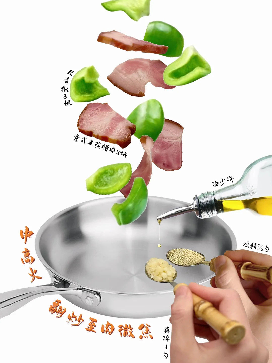 木柴熏制四个大字 光听就香 微波炉再先进也释放不出它的灵魂 唯有在炙热的锅里翻炒🔥 滚烫的油脂裹住腊肉 每片都滋滋作响 嚼下去肥而不腻 肉质紧实有弹性 油香在唇齿间流转 满口都是浓郁的烟熏味和咸香 让人欲罢不能🤤 这简直就是腊肉本肉! 墙裂推荐!买啊~~~ 👉Tips 口重🉑再加点盐 辣椒品种🉑根据个人喜好挑选