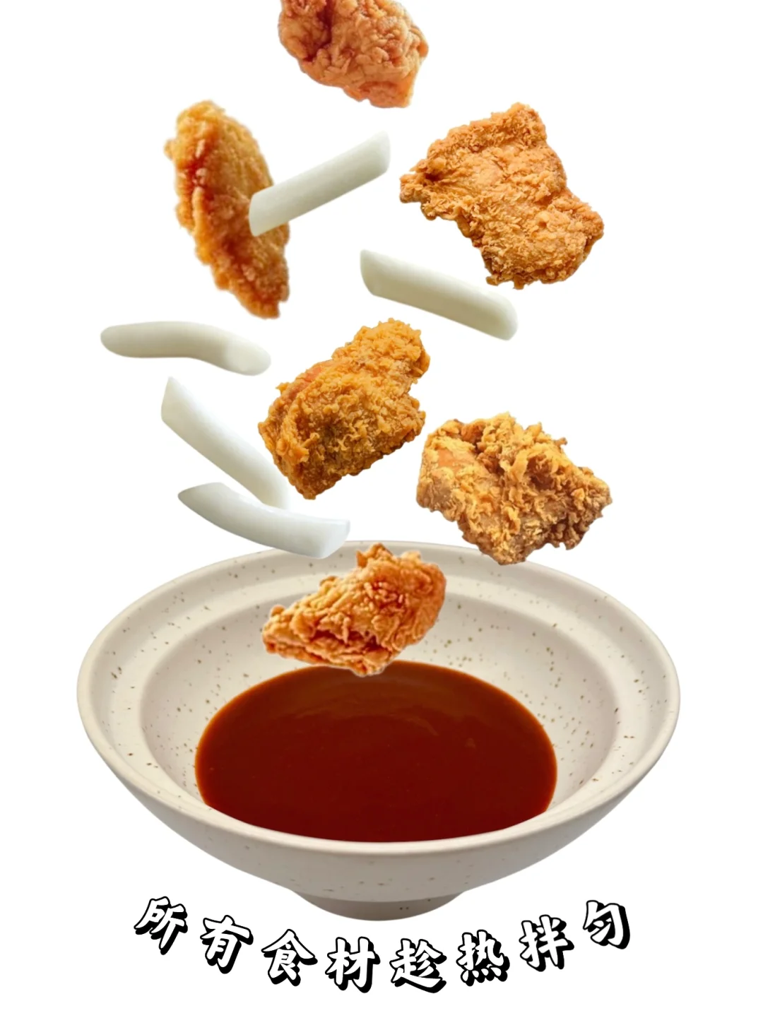炸鸡和年糕都裹满了浓郁的韩式酱汁 甜辣咸香完美交融 每一口都满足感炸裂[赞R] 简直是日常追剧的良配! 👉Tips 酱料🆚鸡块年糕条的比例🉑按个人口味调整
