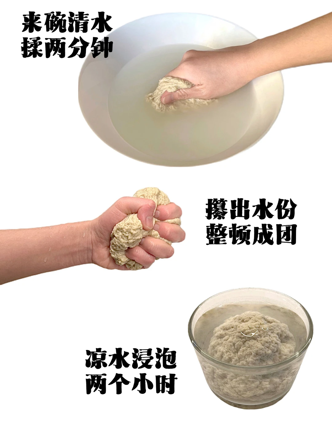 4.蜂窝状面筋团放清水中揉两分钟