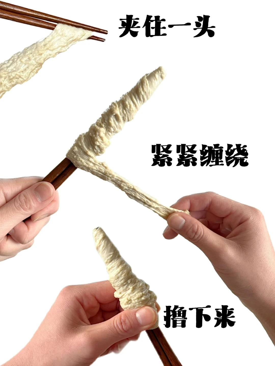 让面筋紧紧缠绕在筷子上后抽出筷子