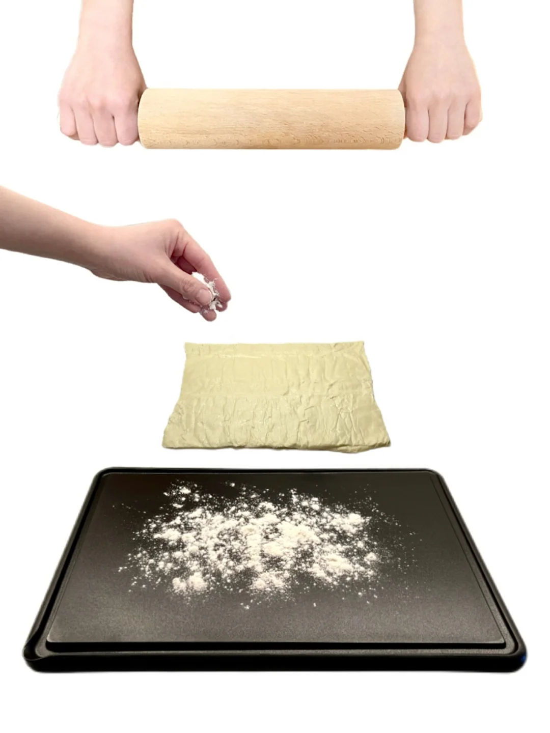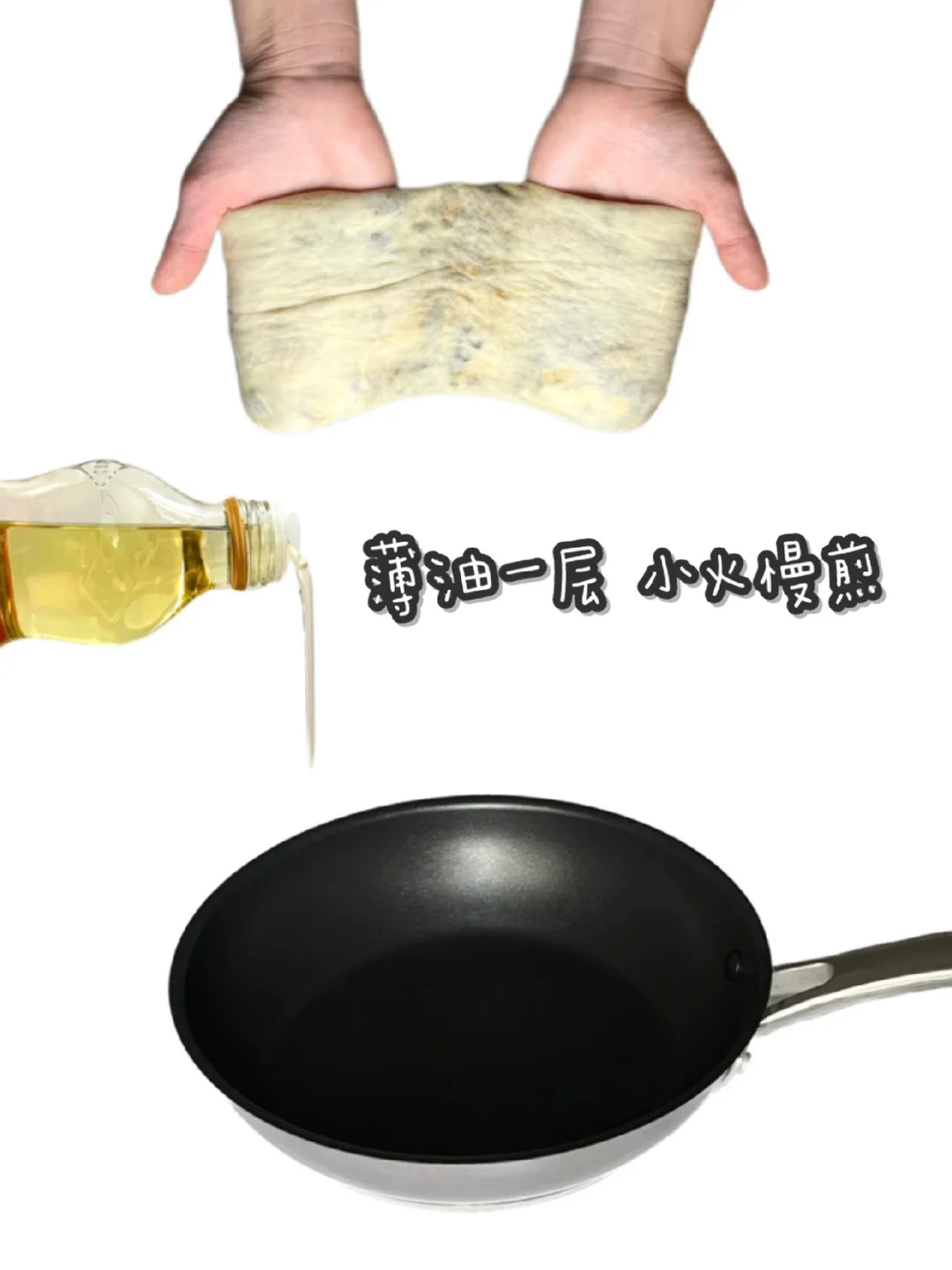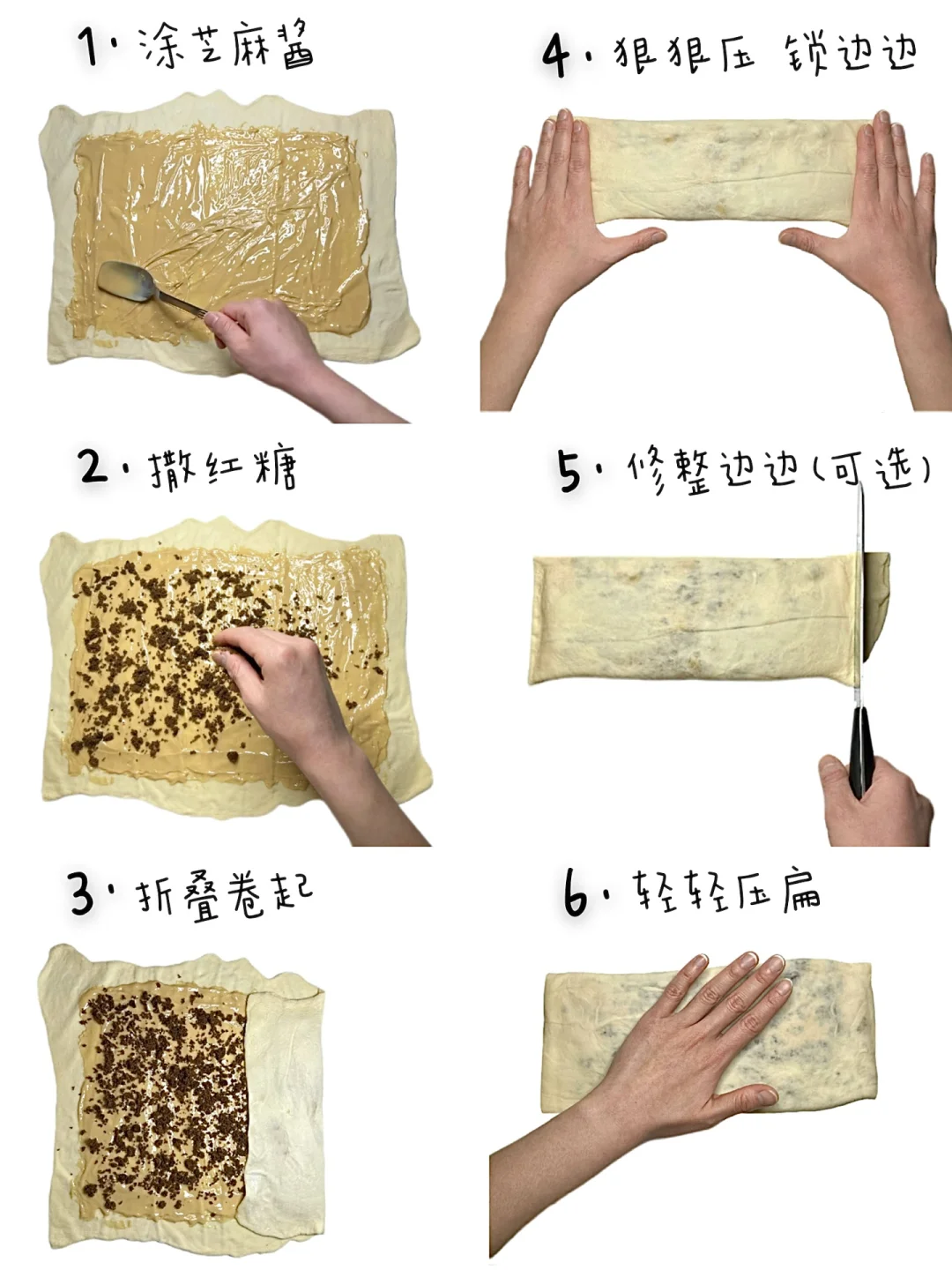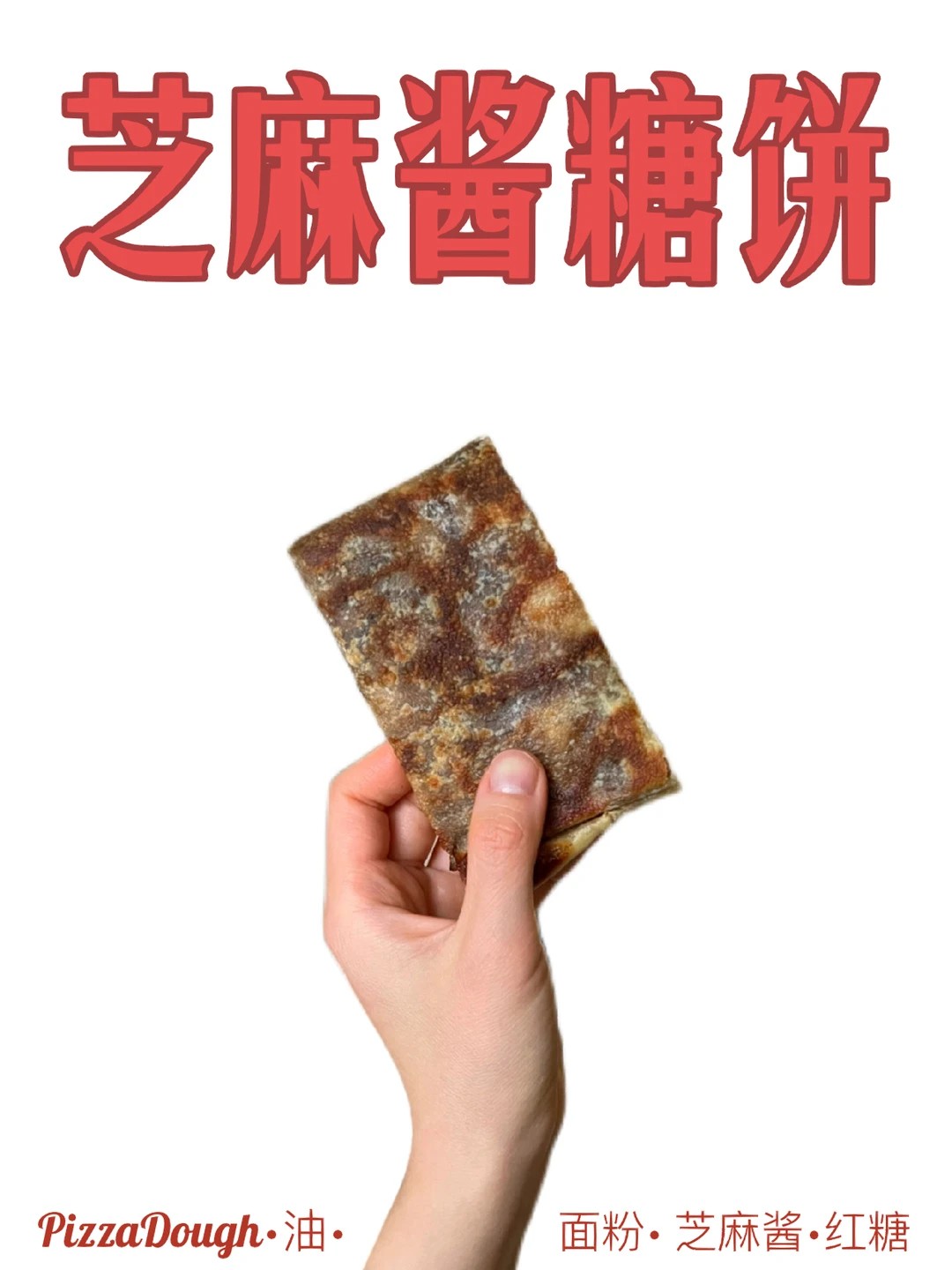 1.用勺背将麻酱涂抹在擀大的饼胚上