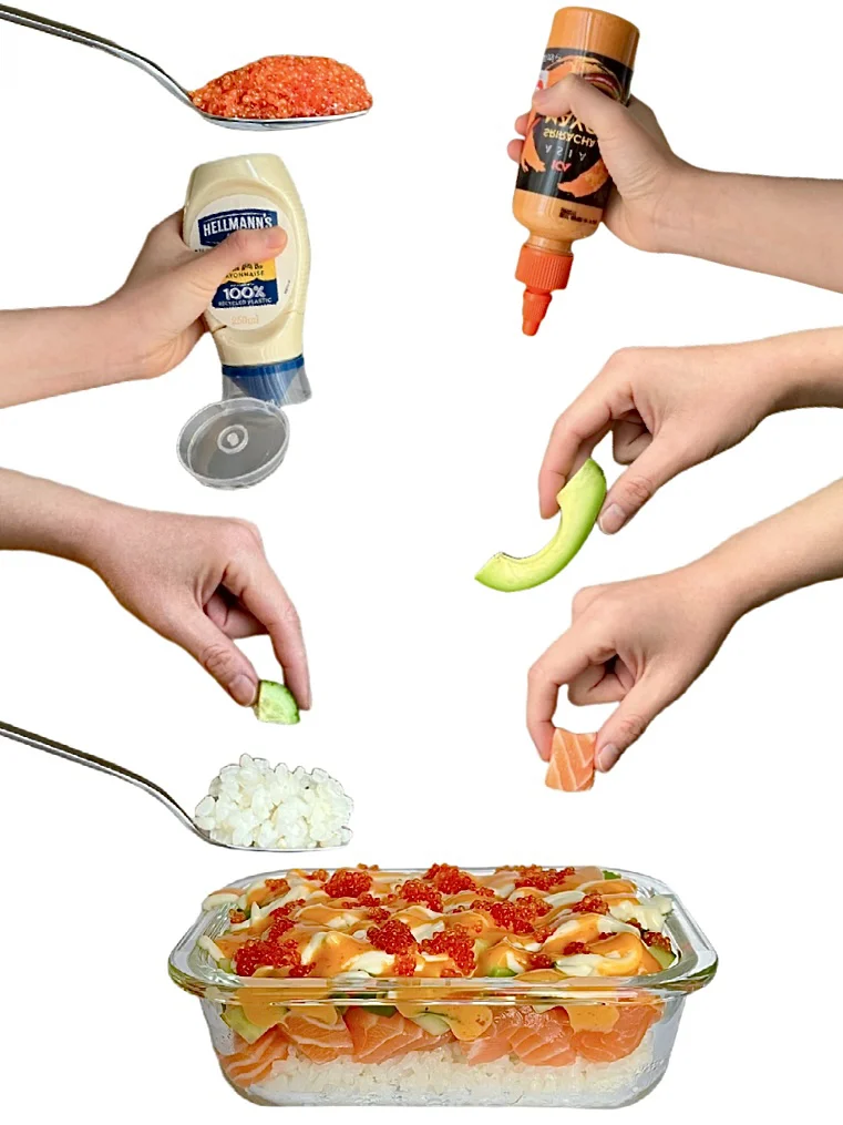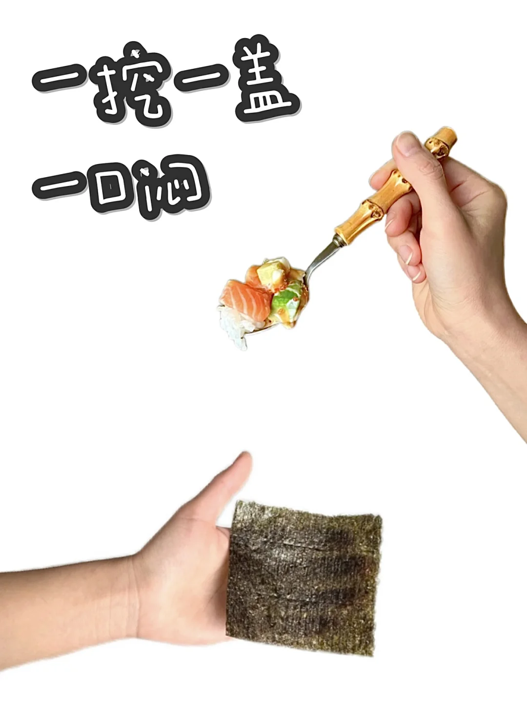 图2⃣️食材都🉑️随机组合 吃不惯纳豆则慎选 👉步骤 剩饭用微波炉加热下 选择喜欢的食材层层叠落 撒上厚厚的酱料 挖一勺放在烤紫菜上 duang~~~华丽丽变身! 我用的酱料是 Sriracha mayo和Mayonnaise 口味是偏酸微辣的美乃滋 👉Tips 酱汁不固定🉑️按喜好选 不食生鱼🉑️同饭一起加热至熟 米品种不限 🈶️啥用啥 👉P.S. 一切只是思路 大家随意发挥