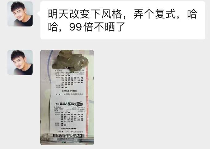 玉貔貅来啦!老哥突然风格剧变,暂时停止99倍操作,转而打大复式,虽然从倍数角度讲远不如之前噱头足看点强,但实际上投入比之前多了3倍,实际力度更大,而且中奖概率肯定也比区区5注单挑高太多[呲牙][呲牙]老哥运气一直不错,不知道这次风格大幅调整会不会很快有所斩获呢?