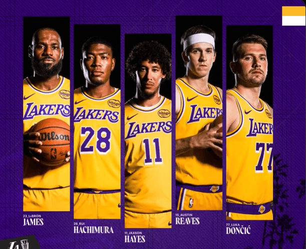 湖人官方晒出首发阵容并附文道:“我们的2025季后赛首发阵容再度回归!”