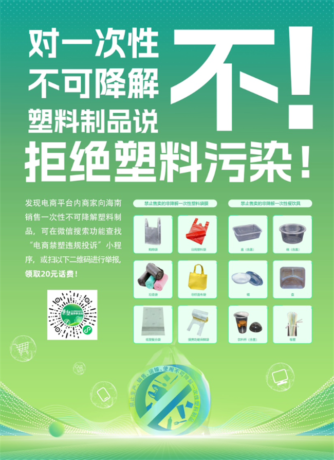 为凝聚全民力量筑牢海南自贸港禁塑防线,精准遏制电商平台违规售塑行为,11月25日,2025年海南省电商平台禁塑宣传活动正式启动。本次活动由海南省商务厅牵头,推出“8万元举报奖励+4大便捷投诉渠道+5场地推联动”的多维举措,以实打实的激励和全方位的宣传,让市民监督更省心、参与更积极,推动电商禁塑监管无死角。