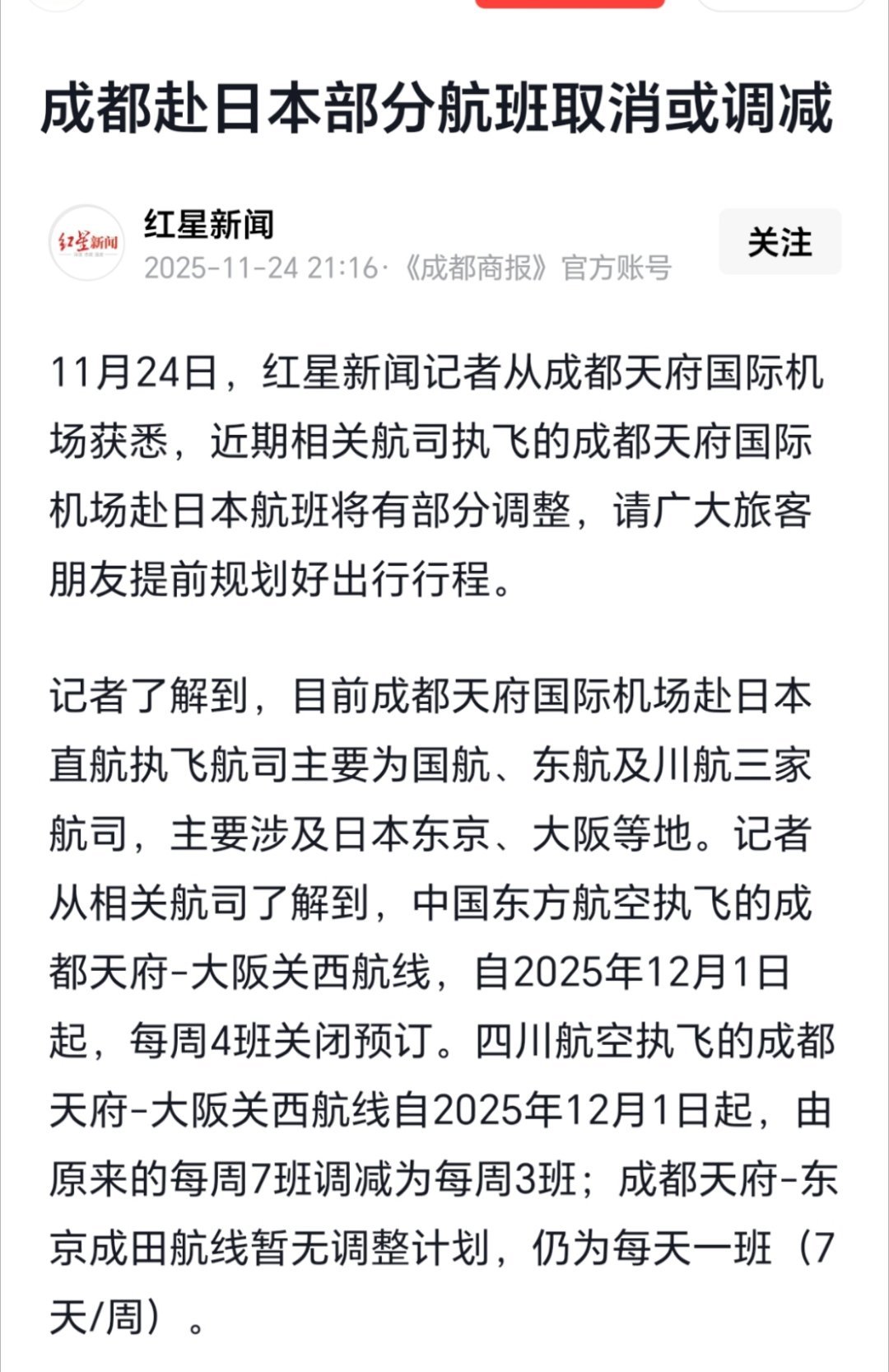 16%航班取消!15万座位没了,中日航线遇冷的3个实在情况11月30日,日