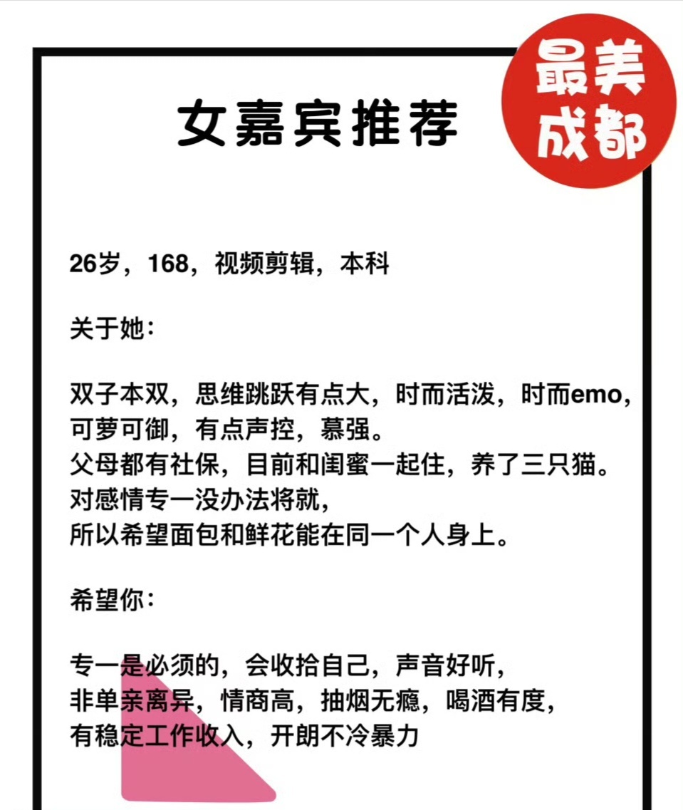 成都征婚【第7499号】99年女生,身高168,视频剪辑,父母有社保;可萝可御,有点声控。希望男生开朗情商高,感情专一,声音好听,会收拾自己,工作稳定… 详情戳图↓特约嘉宾——有意者请私信小美,投稿/加群/周末相亲会/小红娘1V1牵线 请私信 成都征婚成都相亲