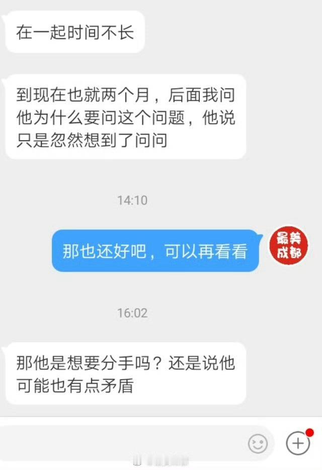 【男朋友突然问我如果分手了,我想找个啥样的】小美,我们在一起两个月了,他这样问是想分手了吗?之前一直喊他见家长,他也不愿意,说还早还不想见家长;我也没见过他的朋友,他平时工作还挺忙的。男朋友是想分手了吗? 结没结过婚的人都共情了你想找个啥样的对象?你对现任对象满意吗?女子索要28万彩礼给两个弟弟 成都