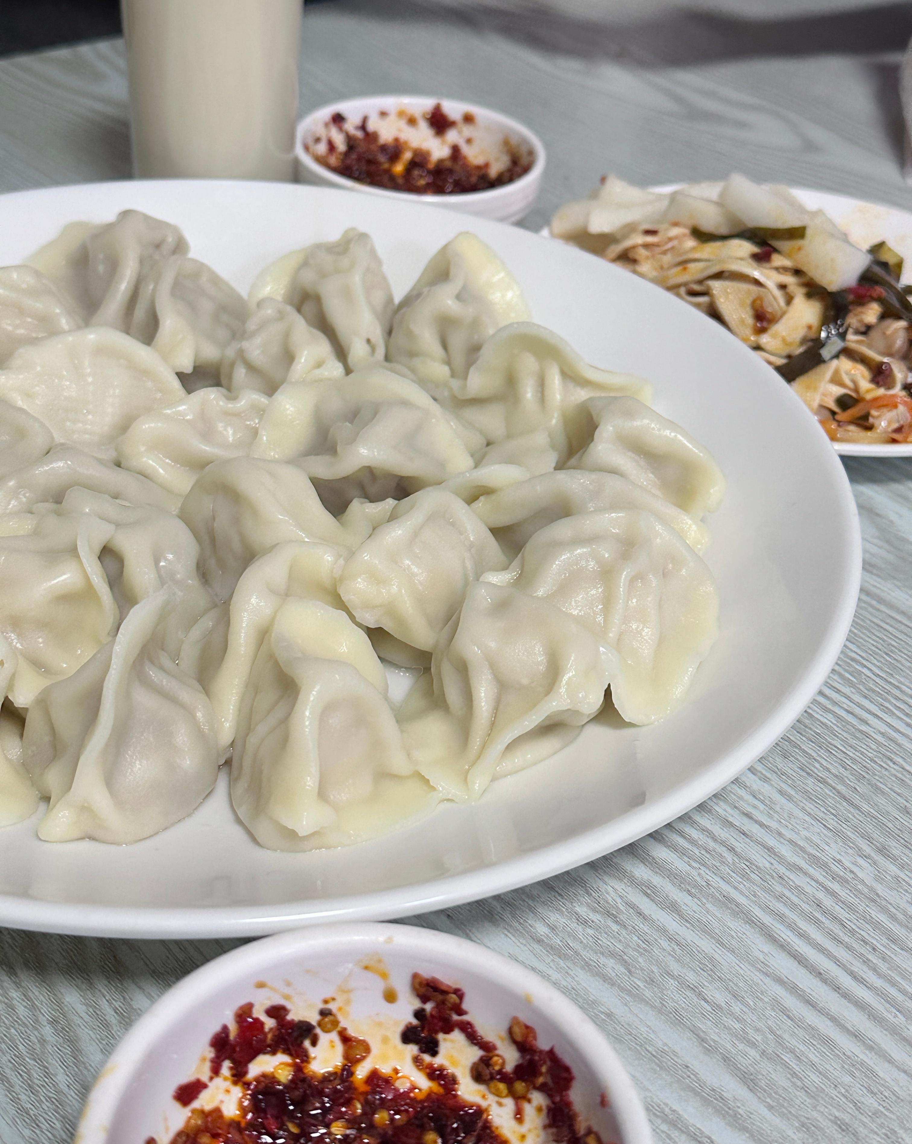 我们这代人的胃还是吃惯中国的饮食习惯,早餐一盘小菜、一个馍馍、一杯牛奶、一个鸡蛋