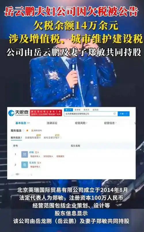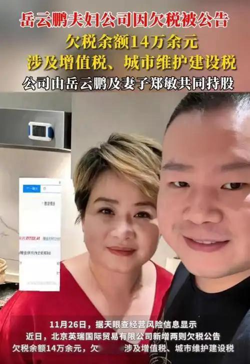 万万没想到,德云社的段子照进现实了!岳云鹏夫妇持股的公司被曝欠税14.1万,增值税+城建税两项清晰上榜,税务公告都挂出来了还没补缴~ 明星关联企业的合规红线果然不能碰,金税四期下再小的数额也藏不住,坐等一个官方回应呀!