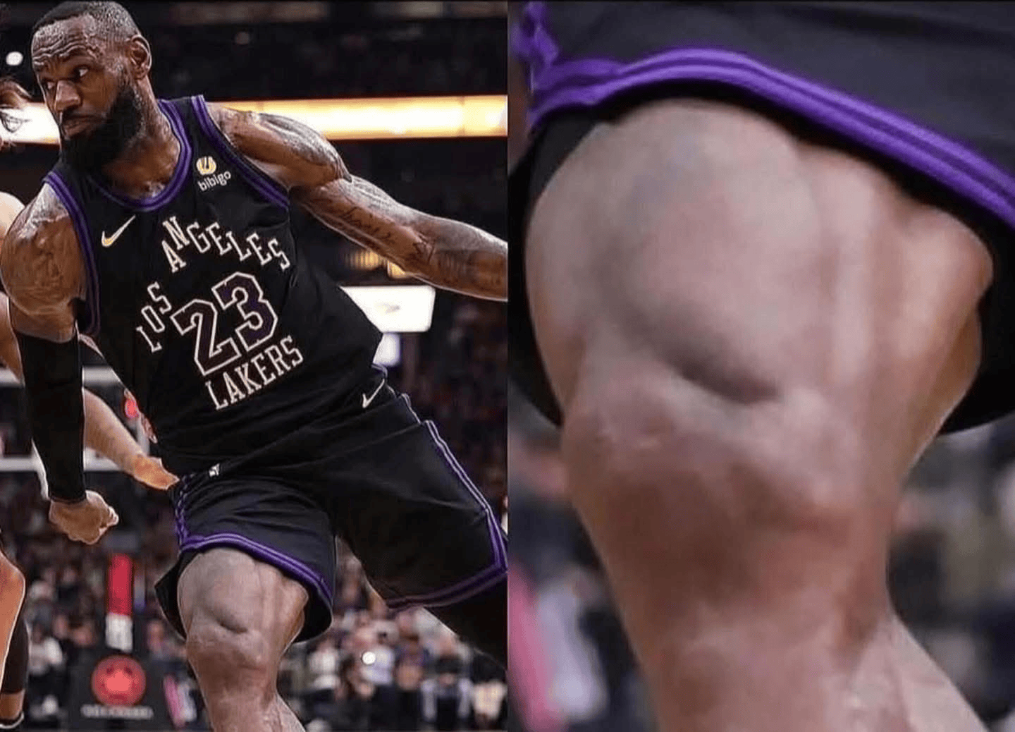 虎扑11月26日讯博主Hoops晒出了勒布朗-詹姆斯在比赛中的腿部肌肉图片。