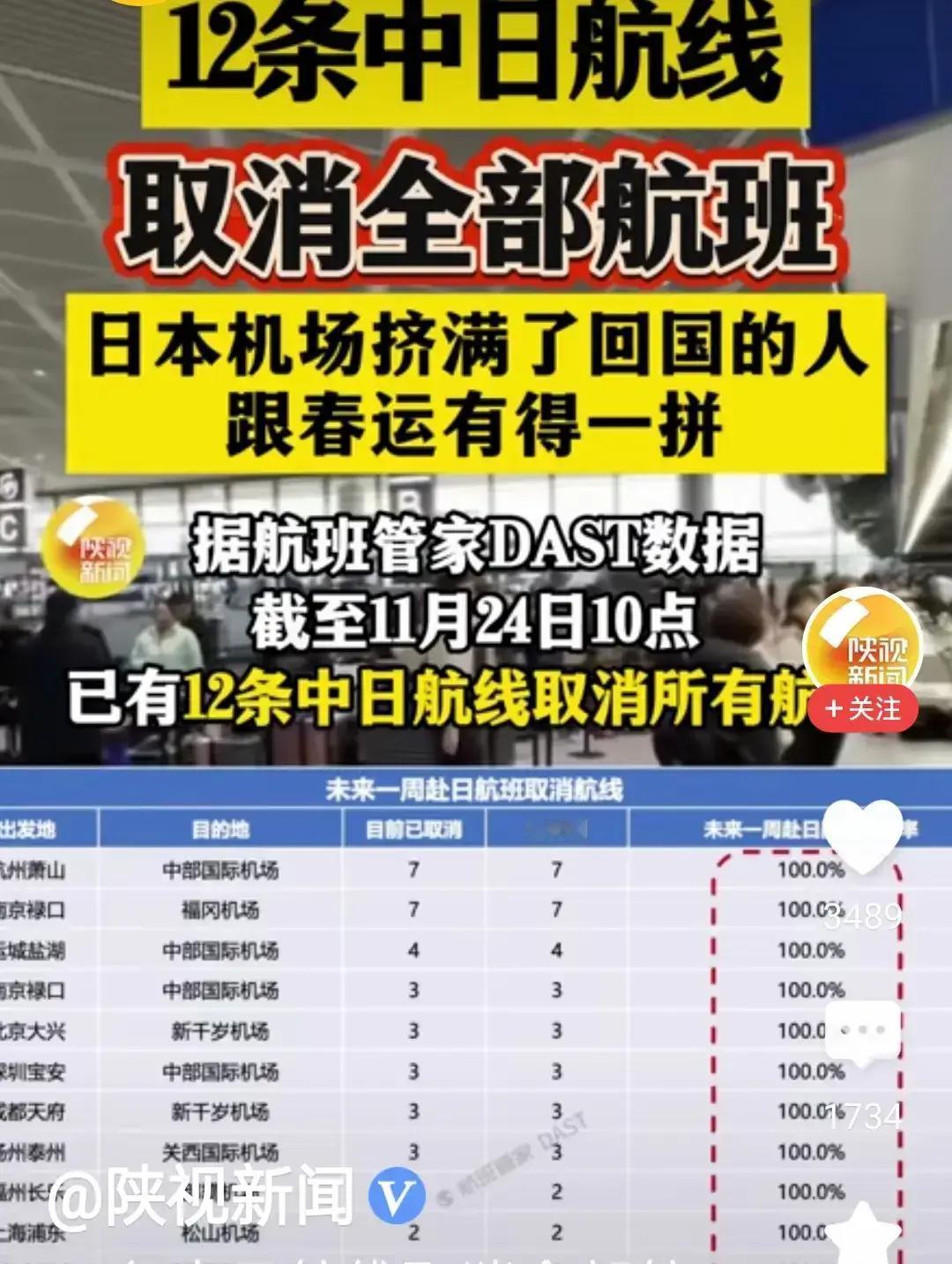 傻眼了吧,赴日旅游这就是不听劝的后果,去的潇洒,想回来可不容易了。航班取消买不到票的比比皆是。 这两天日本的成田、关西这些主要机场,到处都是拖着行李箱、一脸茫然的中国游客,那股子让人心里发慌的焦灼劲儿,隔着屏幕都能感受到。原本该是轻松惬意的旅途收尾,结果变成了乱糟糟的“逃难现场”:有人背着大包小包在值机柜台前扎堆问询,有人坐在大厅长椅上盯着手机抢票,孩子的哭闹声、行李箱滚轮的摩擦声,吵得比机场广播还响,混乱程度一点不比国内春运高峰差。 很多人本来计划下周甚至下个月才回国,现在哪儿还有心思逛没打卡的景点、赏没看够的红叶,满脑子就一个念头:赶紧买票回家。 可回家的路,现在真成了奢侈品。不是随口说说,实打实的数据摆在那儿:截止到11月24日,中日之间已经有12条直飞航线彻底停飞了。 国航从上海飞大阪的航班,一周就少了5班;东航北京到日本的航线,直接砍了6班;最夸张的是天津飞关西机场的航班,六成五都没了。而且这趋势还在往坏了走,眼看单日航班取消率就要冲到20%的峰值,能正常飞的航班越来越少。 之前官方其实早有提醒,驻日本使馆早就发过安全预警,反复强调“非必要不前往”,可那时候不少人根本没当回事。有人高调在朋友圈晒赴日机票和行程,别人好心提醒风险,他们还觉得这些提示都是多余的,甚至带着点不屑,觉得“我花钱旅游,想去哪去哪,不用别人管”。结果现在好了,航班说取消就取消,想改签都没门路。 第三方购票软件上,连续好几天的回国机票早就被秒空,剩下的少量机票价格更是涨得离谱。原本几千块就能买到的经济舱,现在直接翻了三倍还多,有的甚至被炒到了六倍价格,不少人卡里的钱根本不够付这突如其来的“天价机票”。 那些被困在机场的人,日子过得别提多糟了:民宿房东到点赶人,酒店续住又贵得肉疼,只能在机场凑活过夜,吃不上热饭,喝不上热水,只能和一群同病相怜的同胞一起守着,盼着能刷到一张回国的票。 这群滞留的人里,什么样的情况都有:有拖家带口的,孩子哭着要回家,大人急得团团转;有退休老人,本来想趁身体好多去看看,结果连智能手机抢票都不会,只能跟着别人瞎着急;还有些年轻人,本来觉得自己身体棒、反应快,连着熬了好几个通宵刷票,可每次眼看着有余票,点进去瞬间就没了,那种绝望劲儿,把之前“错峰赏红叶”的浪漫幻想击得粉碎。 短短四天时间里,全国就有54.3万张赴日机票被主动取消,关西机场里的免税店,以前挤满了中国游客,现在导购员半天都见不到一个中国脸孔,冷清得不行。这其实是大多数人看懂局势后,赶紧止损的理性选择,可那些已经去了的,就只能硬生生扛着这份狼狈。 更讽刺的是,当初那些说着“不用国家管”的人,现在每天啥也不干,就盯着大使馆的官网刷新消息,生怕漏掉一点包机的动静。这种前后反差,真是让人唏嘘,这大概就是生活给的一记响亮耳光,让他们明白任性的代价有多贵。 好在国家并没有因为他们当初不听劝,就真的不管不顾。几大国有航司很快就推出了政策,全额退款、免手续费改期,尽量减少大家的损失;大使馆也一遍遍通过各种渠道提醒,让大家别信黄牛的加价票,正规渠道虽然慢,但才是最靠谱的回家路。 说到底自由从来都不是随心所欲,前提是得对自己负责。看着那些在机场里吃不好、睡不好的同胞,没人会真的幸灾乐祸,只是希望这次的教训能让大家记牢:官方的风险提示,从来都不是为了限制谁的脚步,而是基于各种大数据研判,想帮大家挡住那些不可预知的危险。 真等到掉进坑里再喊疼,代价可就不只是钱了,还有在异国他乡那种叫天天不应、叫地地不灵的无助和惶恐。下次再出门,可别再把好心的提醒当成耳旁风了,毕竟平平安安出去,顺顺利利回来,才是最重要的。 信源:光明网——日本旅游,退!退!退!