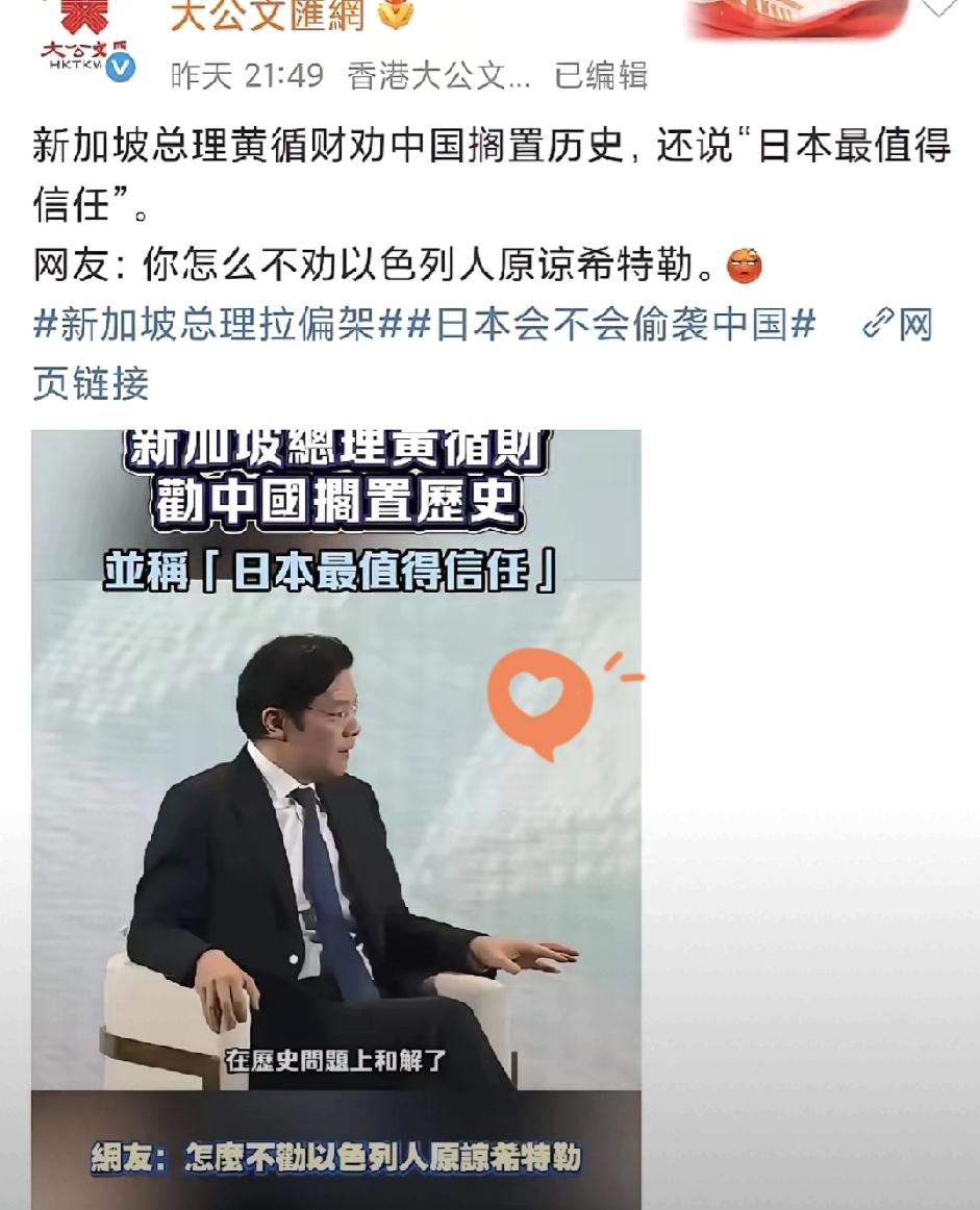 为啥大家总爱蹲香港报纸的锐评? 新加坡那位“劝中国搁置历史、夸日本可信”的言论