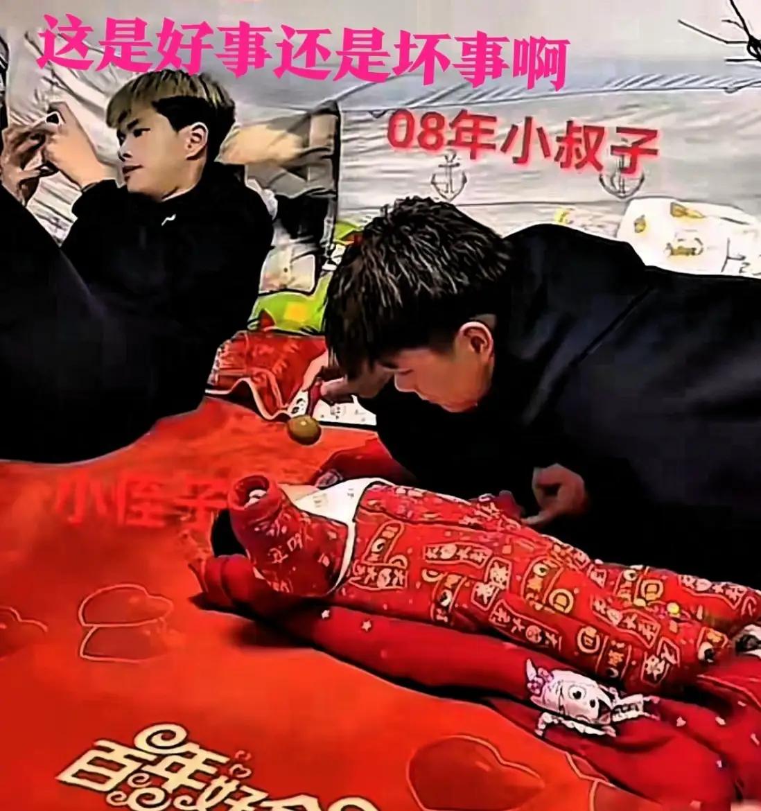 江苏徐州,一名37岁男子在网上分享了一个喜悦,自己当爷爷了,17岁的儿子在技校和女同学给他生了一个孙子,如今刚满月的孙子已经让这个家庭进入新的阶段,网友:一家人凑不出一个本科学历! 据男子介绍,自己17岁的儿子正在当地一所技校就读,与同班女同学相恋后意外有了孩子。 起初得知消息时,他和妻子既惊讶又忐忑,但看着儿子和女友青涩却坚定的模样,最终决定尊重孩子们的选择,全力支持他们组建小家庭。 “看着襁褓里的孙子,感觉像做梦一样。”男子在视频中笑着说,自己正当壮年,如今既能照顾年迈的父母,又能帮衬年轻的儿子儿媳,一家三代同堂格外热闹。 这段分享传开后,网友们看法不一。有人送上祝福:“不管怎样,新生命的到来都是喜事,祝一家人幸福”;也有网友担忧:“17岁还没成年,正是求学的年纪,过早承担家庭责任压力太大”;更有网友打趣道:“37岁爷爷、17岁爸爸,一家人凑不出一个本科学历,这人生进度条拉满了”。
