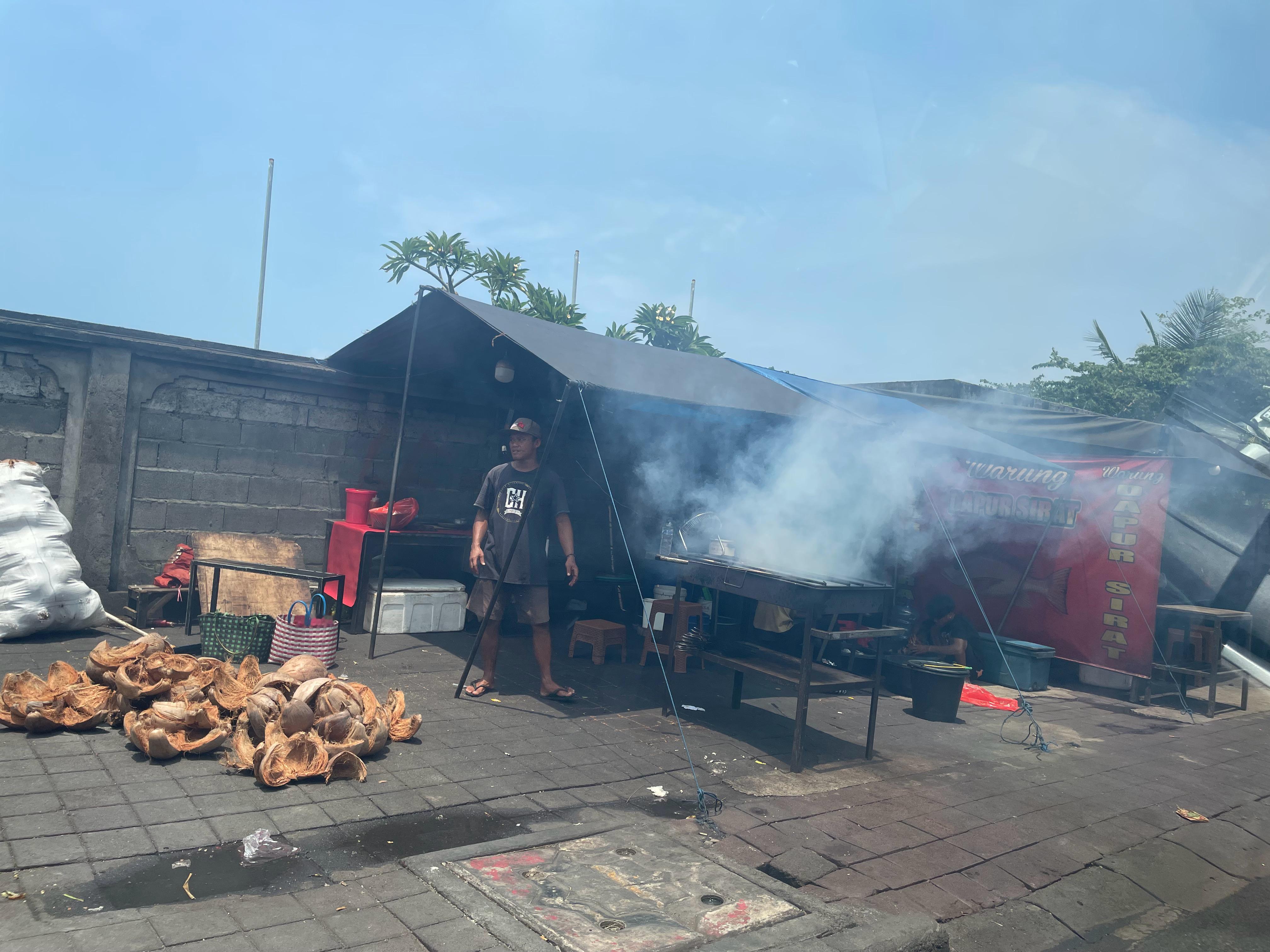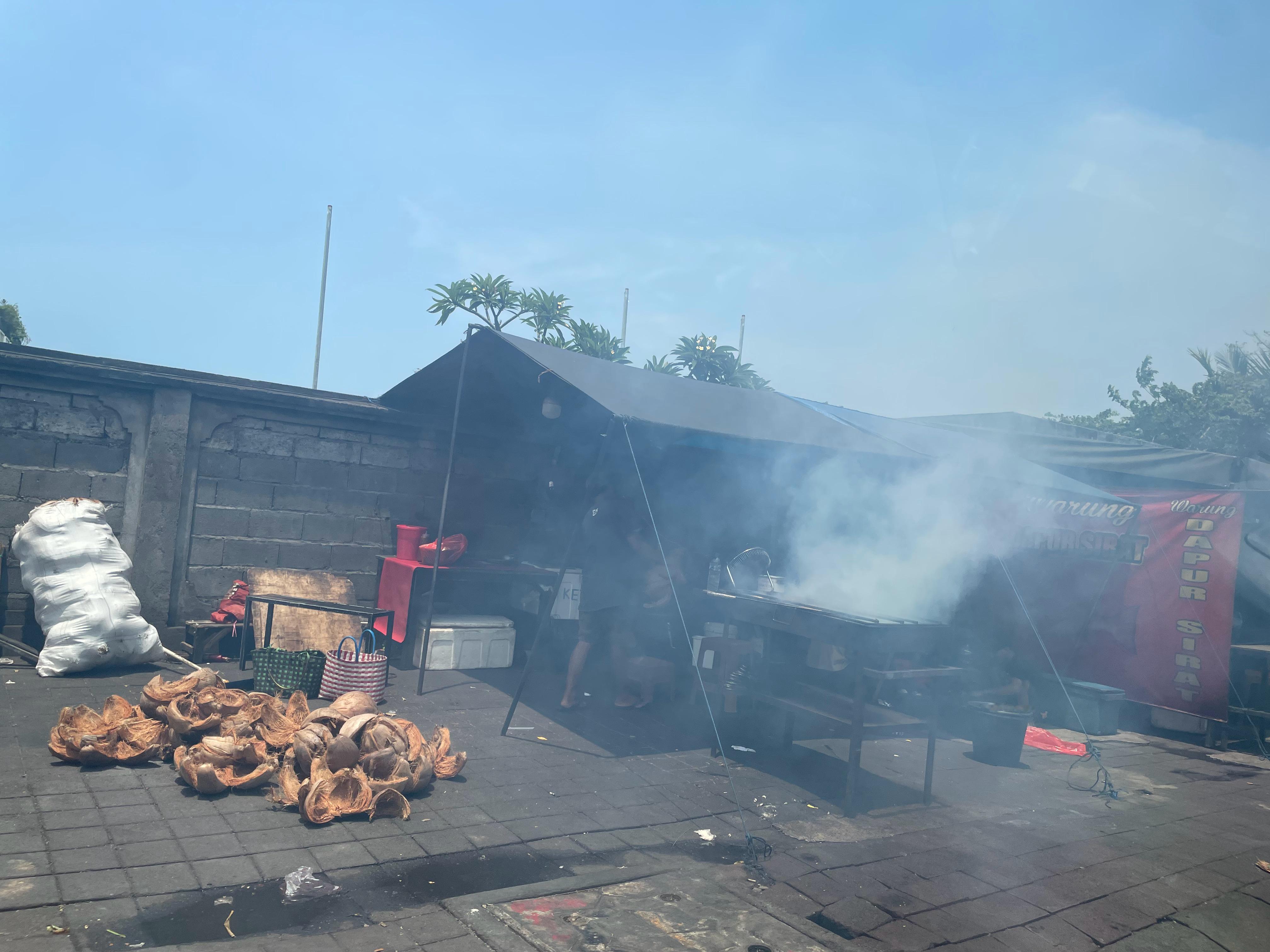 巴厘岛本地人用椰子壳代替碳,用来做烧烤,不知道味道如何。我不记得在海南有见过这样的…