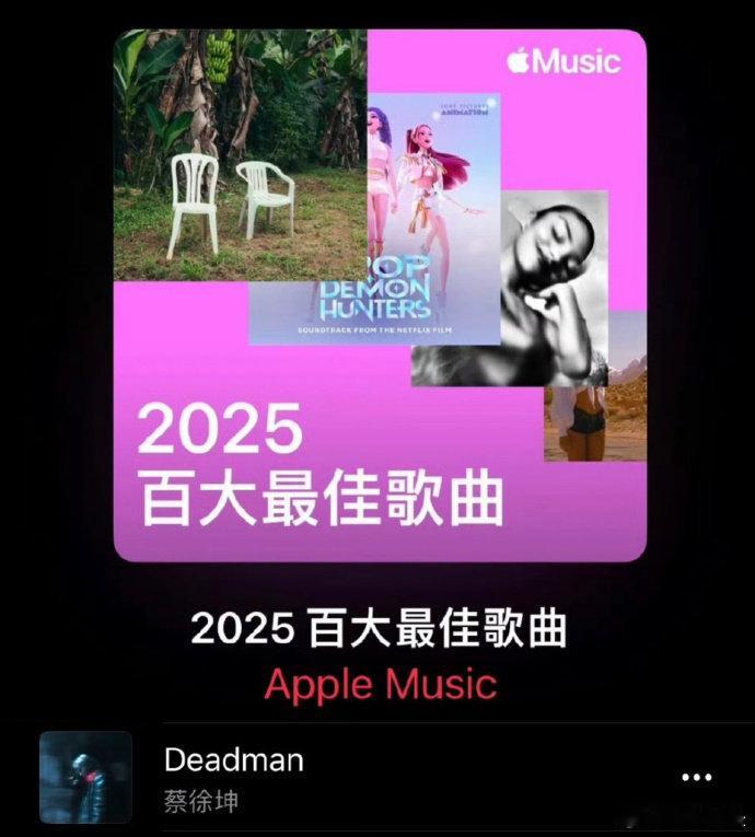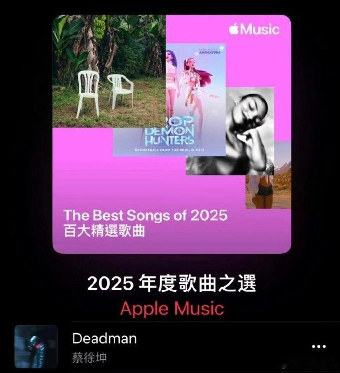 蔡徐坤横扫AppleMusic年度榜单 蔡徐坤Deadman入选AppleMusic榜首,确实是好听啊...蔡徐坤Deadman入选AppleMusic榜首