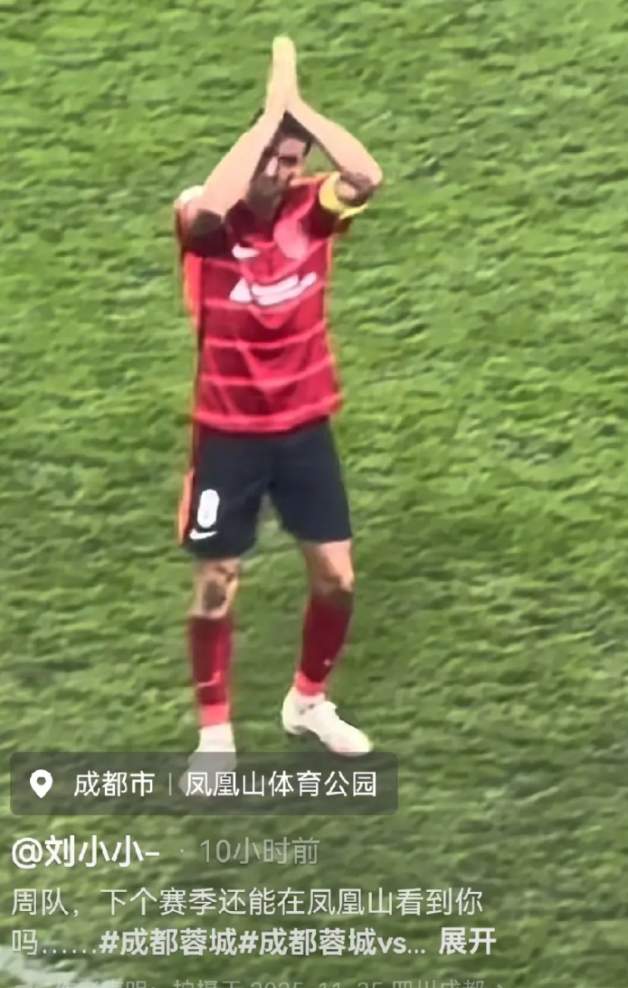 成都蓉城亚冠对阵广岛三箭赛后,周定洋单独出来谢场,这是要离开的节奏,先前以为徐正