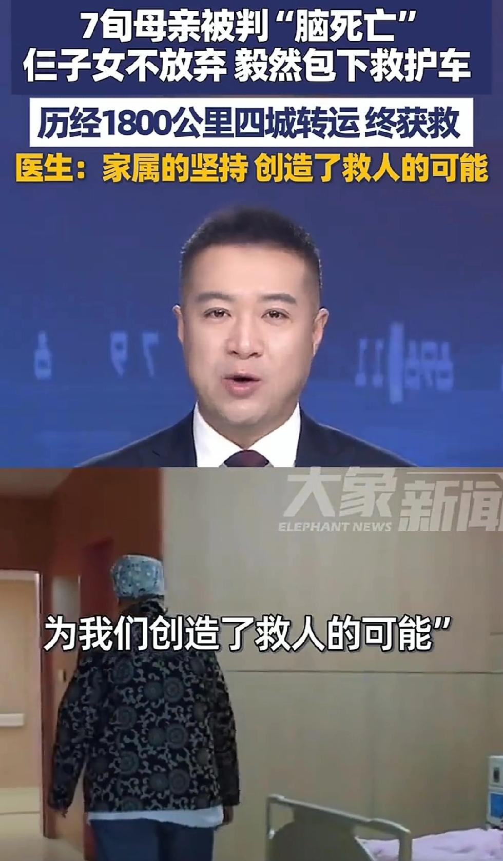 一位75岁的老人被判定脑死亡,家属没有放弃,历经艰难,花了4万元车费,最终成功将母亲救回。 听到这个新闻,我十分激动,忍不住想多说几句。有些人把老人视为负担,而在今天这个故事里,儿女却将老人当作宝贝。 实际上,老人真的是家中珍宝。有老人的家庭,子女有所牵挂,会因老人定期相聚,兄弟姐妹也会因此更加亲密。而且,无论在外多么不顺,回到家中,老人都会包容你、牵挂你。父母是一个人一生最大的财富与幸福。 希望所有父母健在的人,都闭上眼睛,好好想想父母对自己的爱。无论年纪多大,在父母面前,都能无拘无束地享受这份至深的亲情。