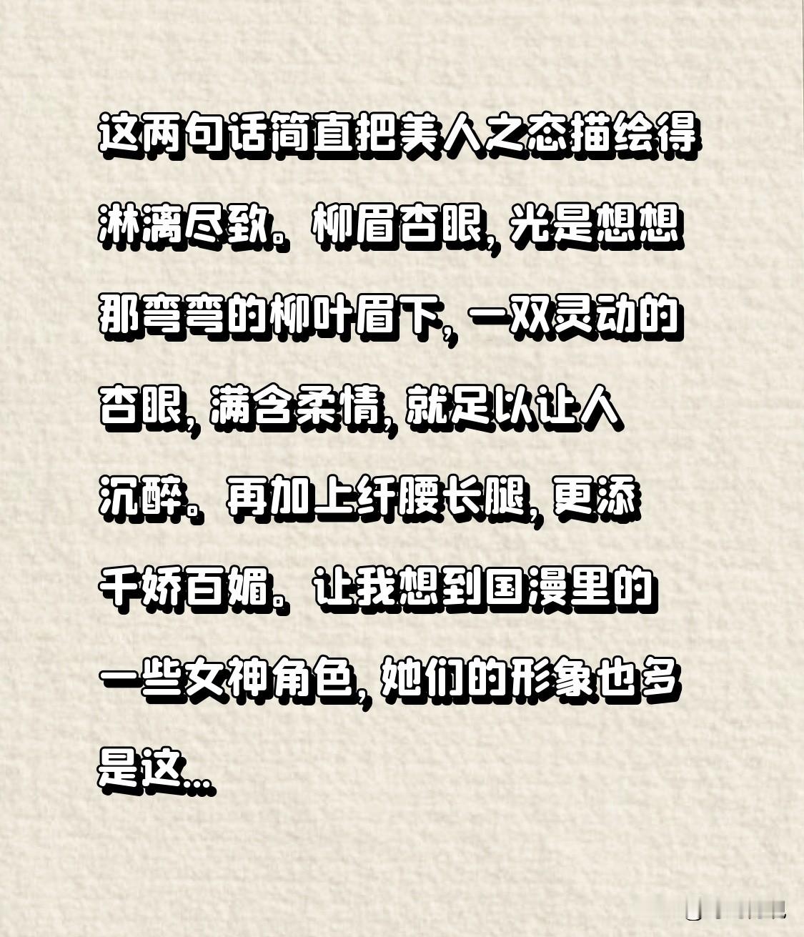 柳眉杏眼,光是想想那弯弯的柳叶眉下,一双灵动的杏眼,满含柔情,就足以让人沉醉。