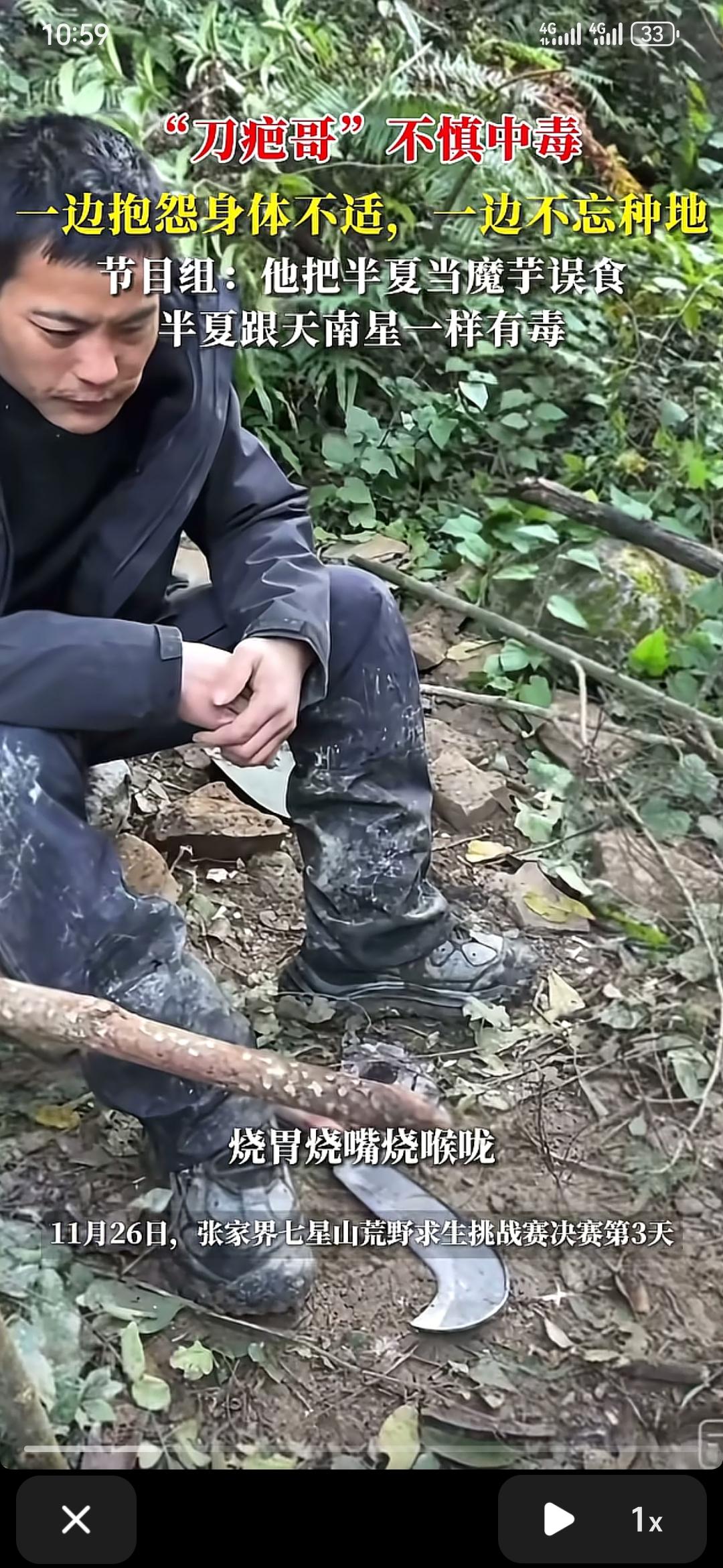 荒野求生冷美人刚出院 刀疤哥又要进医院了? 刀疤哥在今天不慎中毒,出现烧胃烧嘴烧喉咙的症状,只因为误食了这样东西 ——半夏,他把半夏当成了魔芋便吃了下去。半夏可是和天南星一样有毒的,生品误食毒性交强,炮制过后毒性降弱 这一次看刀疤哥能不能扛过去,否则只能遗憾退赛了