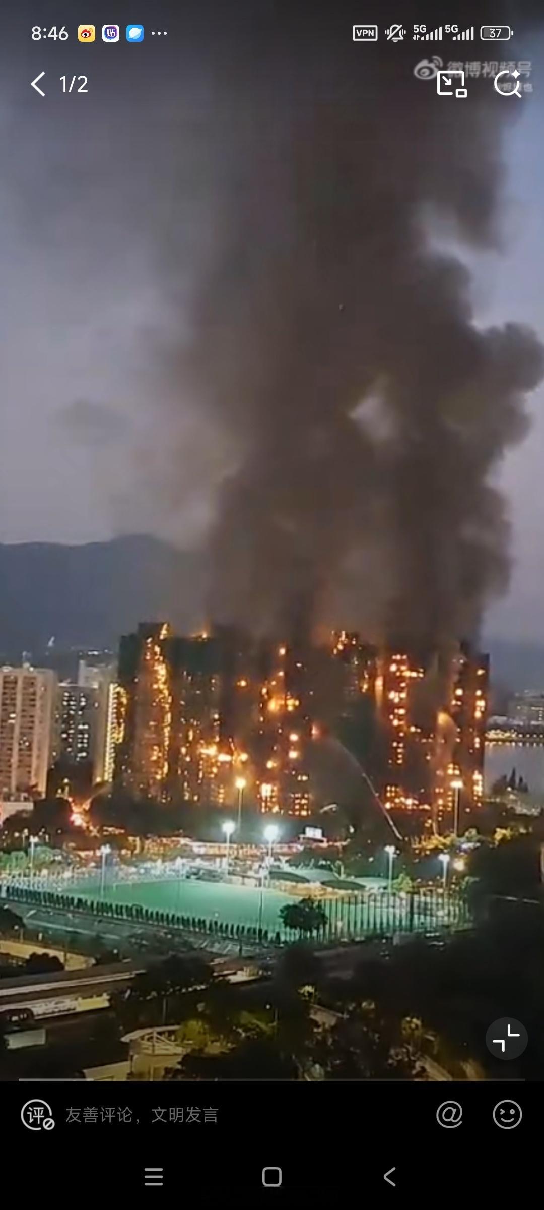 香港火灾事发的宏福苑小区,虽然是海景房,但这个鸽子笼密度也是挺令人难受的。在谷歌地球上量了一下楼间距最近的地方不到10米,楼间距宽的地方也就十几米,这一下子烧起来就控制不住了 修缮工程的脚手架还全是竹制的...外面挂的防护网也能着