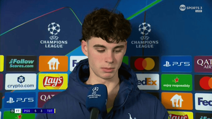 虎扑11月27日讯托特纳姆热刺中场阿奇-格雷在3-5输给巴黎圣日耳曼的欧冠赛后,接受TNTSport采访。