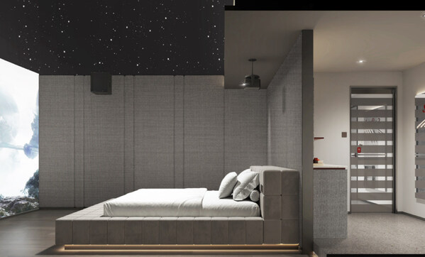 尚客优7酒店首次推出的"200剧院级观影房",18-24㎡面积可以体验到200英寸巨幕带来剧院级影院体验,在设计方面完全颠覆传统的排房布局,实现充足的观影距离体验,并通过隔音软包、加厚隔墙设计、专业级影音设备保障体验,单房造价8万元/间,预估售价200-300元/间夜。