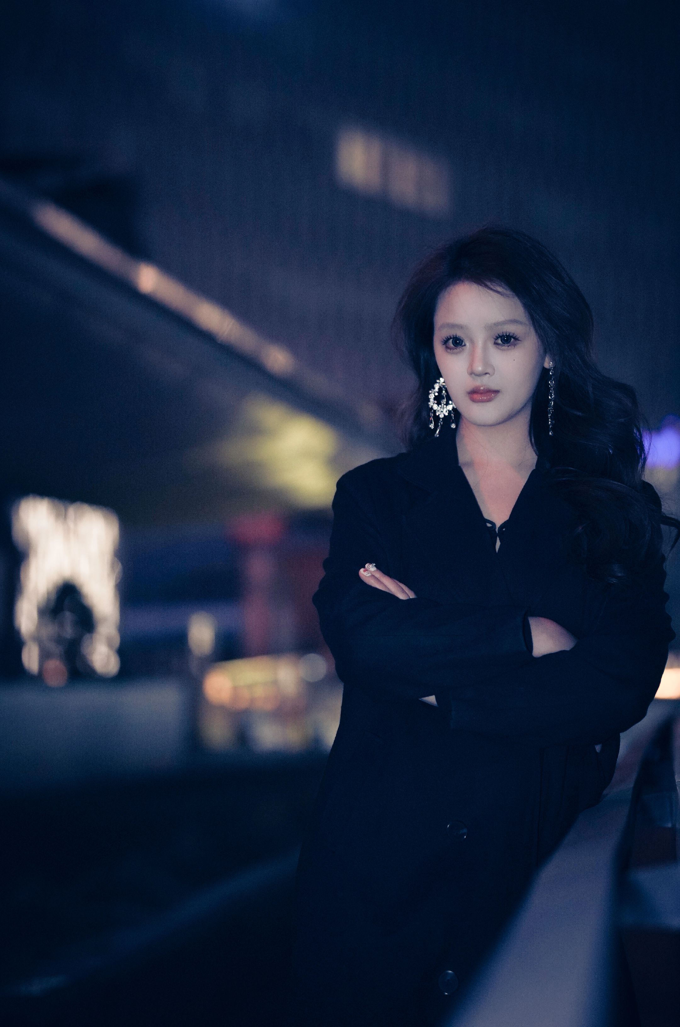 夜色温柔,灯光洒落,每一步都是风景。✨🌃 夜景人像 摄影约拍摄影 大片既视感 黑色系穿搭