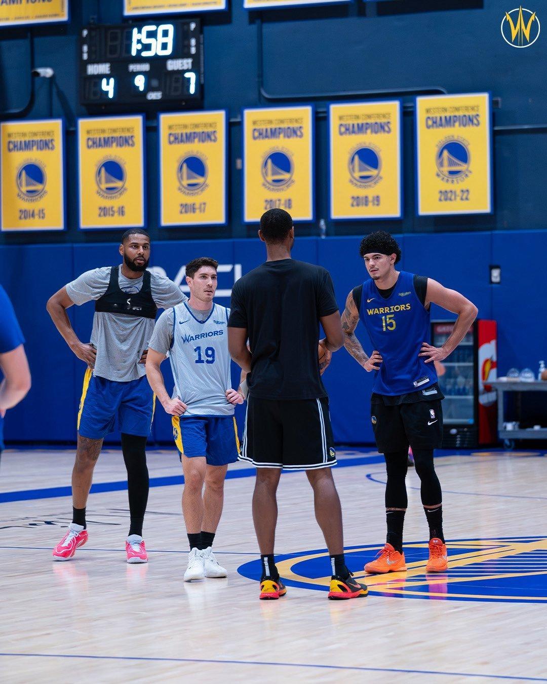 今天,梅尔顿和库明加在蔡斯中心参加了与圣克鲁斯勇士队的5对5对抗赛。比赛进行了两节,两人都表现出色。科尔评价梅尔顿说:“他面临的最大挑战将是节奏……他的身体状态看起来非常好。”金州勇士勇士下放梅尔顿库明加桑托斯
