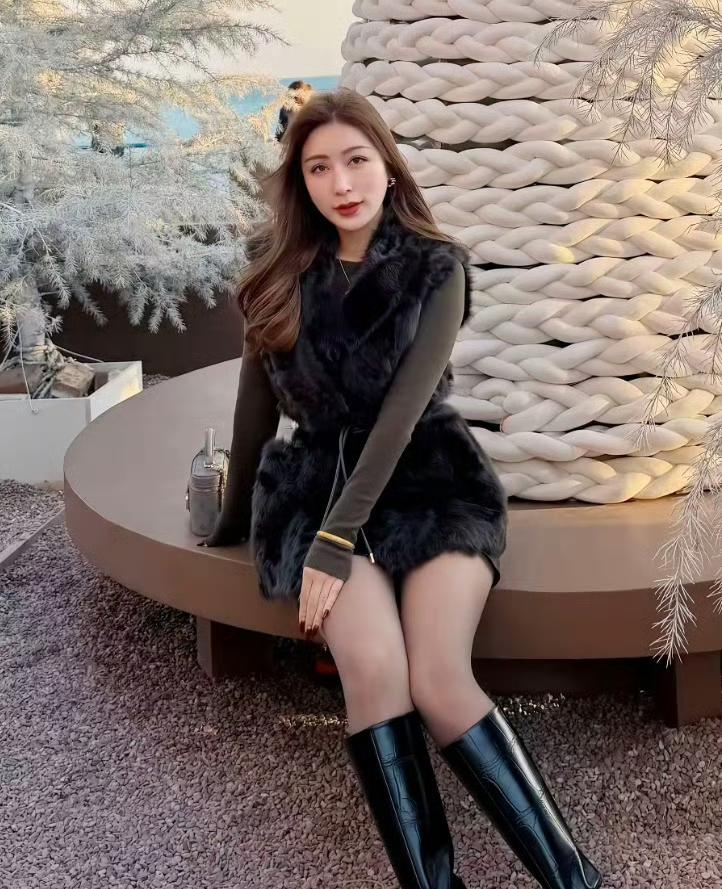 今日穿搭:毛绒外套配黑色长靴,保暖又时髦。
