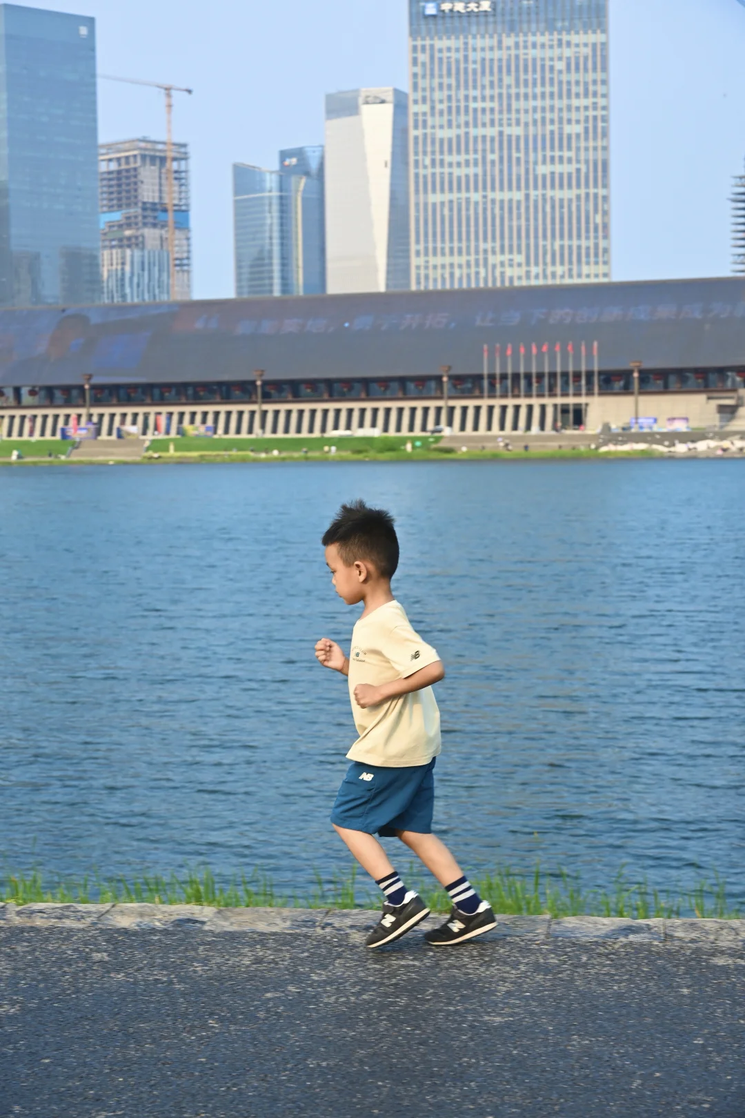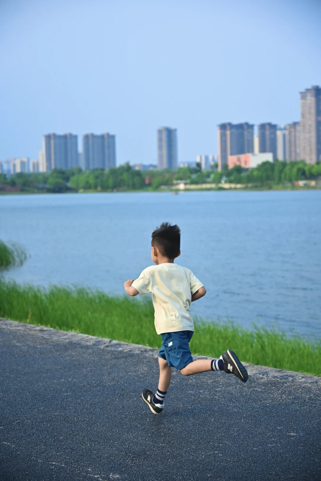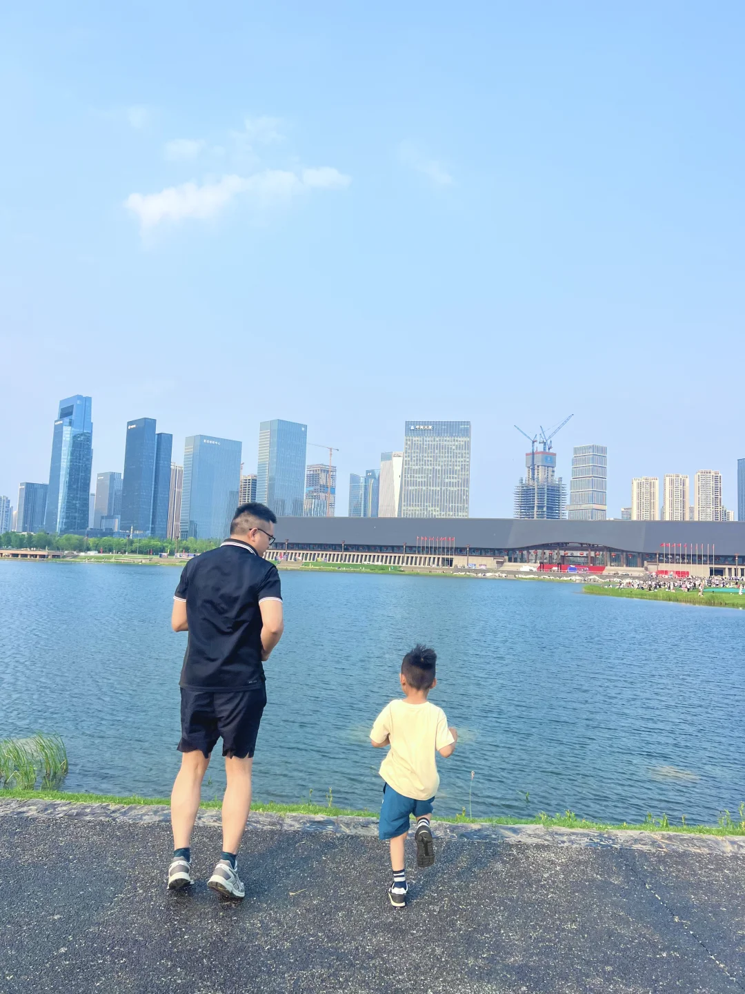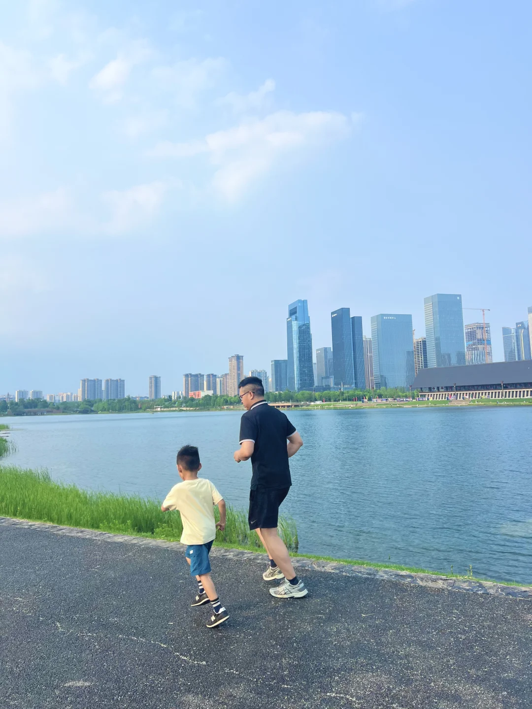 现在每天晚上有空,就拉着爸爸去秦皇湖锻炼啦!