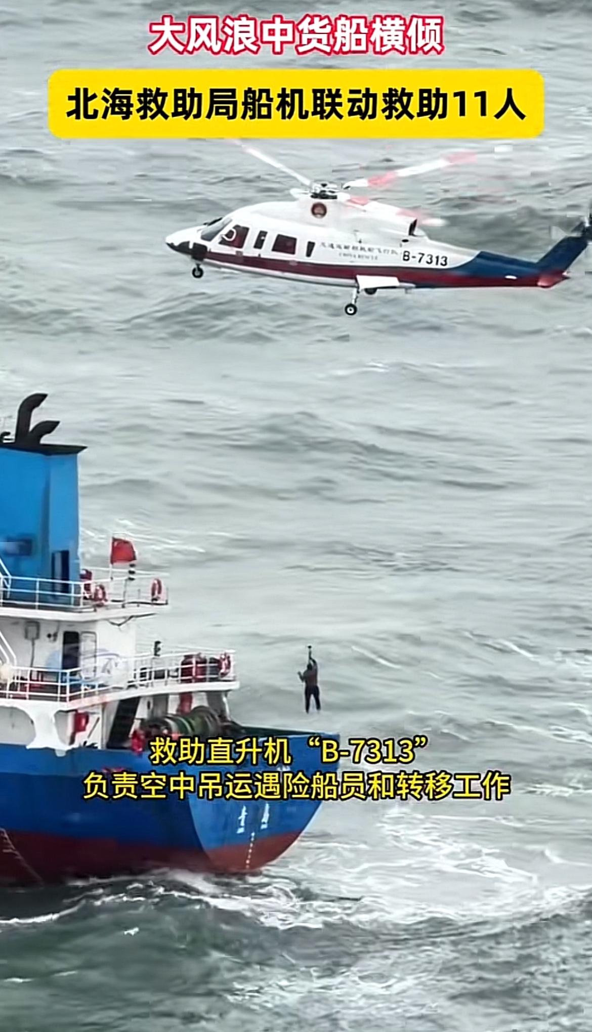 今天的烟台海域,风急浪高,一艘货轮向右倾斜,眼瞅着要翻,11名船员危在旦夕,有人