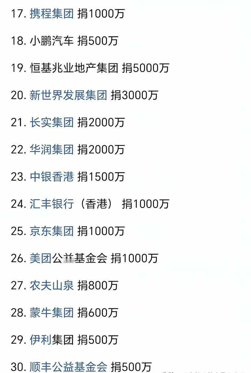 香港大埔宏福苑发生五级火灾,灾情严峻,众多企业纷纷捐款支援救援及灾后重建工作,一方有难八方支援这就是中国,大陆每次遇到大灾难时香港同胞都会倾囊而出捐款捐物,香港大火大陆企业也积极做出行动。 运动品牌安踏捐款3000万,特步捐款2000万,361捐款1500万,这些品牌有担当。 京东不但捐款1000万,捐助的物资已经到达现场,京东刘强东曾经多次说过哪里有灾难当地的京东可以直接援助物资不需要汇报,刘强东是个汉子。 马云公益捐款3000万旗下菜鸟业务已经调动资源参加救援,阿里巴巴捐款2000万,马云也是好样的。 车企比亚迪捐款1000万,小米捐款1000万,小鹏捐款500万,你们都很优秀。 腾讯公益慈善基金会(香港)启动首批捐款1000万港元,用于受灾居民的紧急救援、过渡安置、生活物资补给等;随后追加2000万港元捐款,累计捐款3000万港元支援香港大埔火灾救援。腾讯也是好样的。 字节跳动:捐赠1000万港元,支持香港大埔火灾救援。 中国红十字会总会向香港红十字会捐赠200万元人民币,用于火灾的应急救援和人道救助,并将根据救灾情况提供后续支持。 温暖还在继续…….会有更多的企业传递温暖!