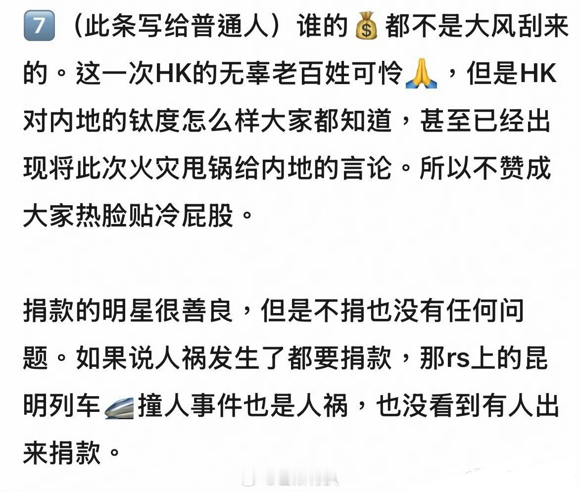 马甲,这次香港大火确实不是天灾,而是人祸,没必要逼着内娱208捐款……