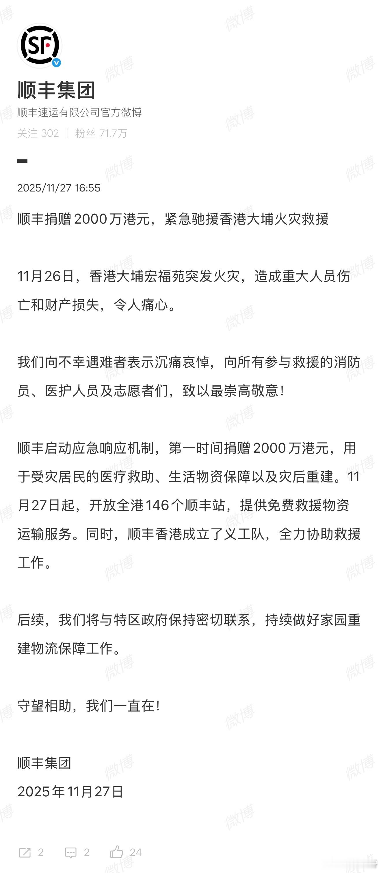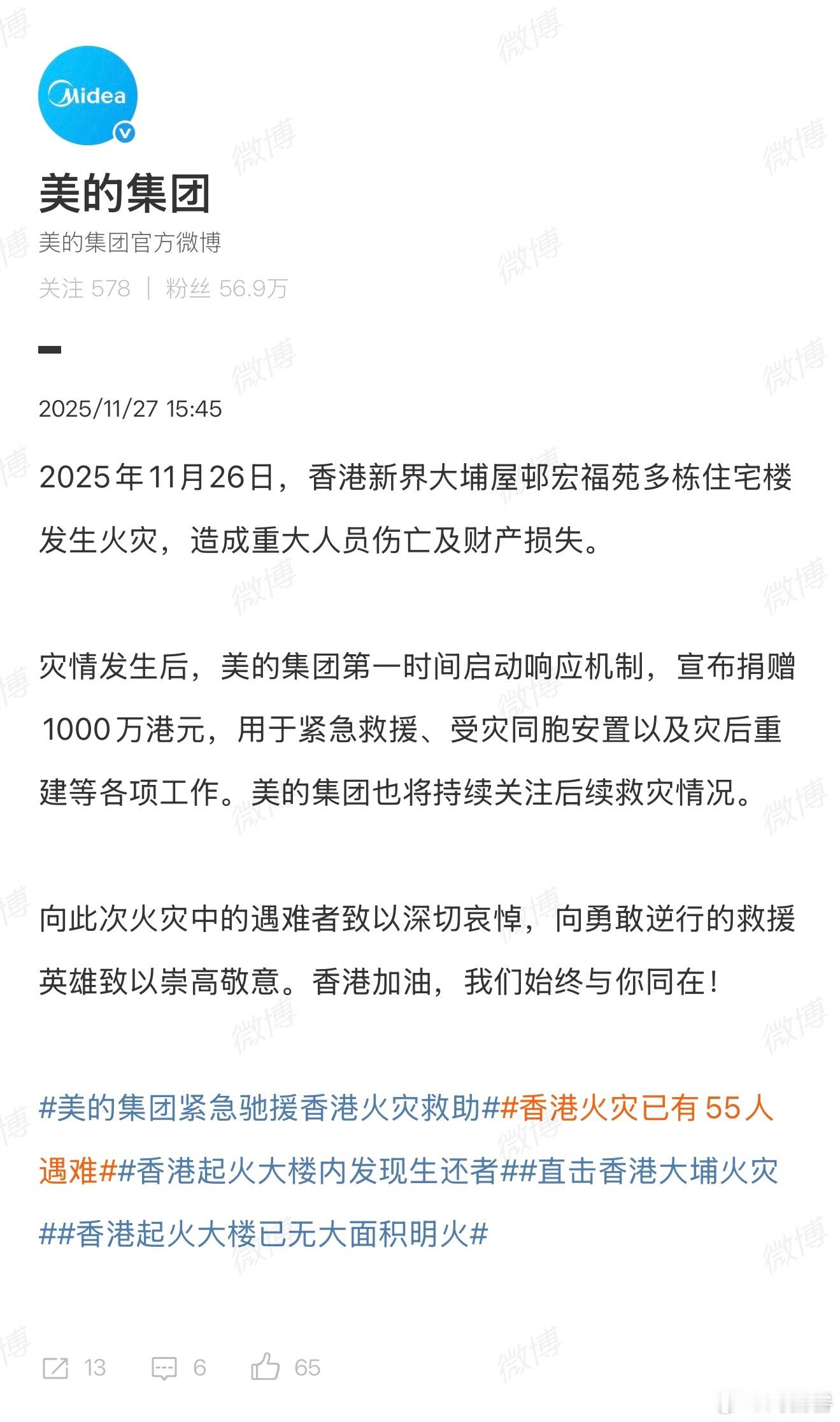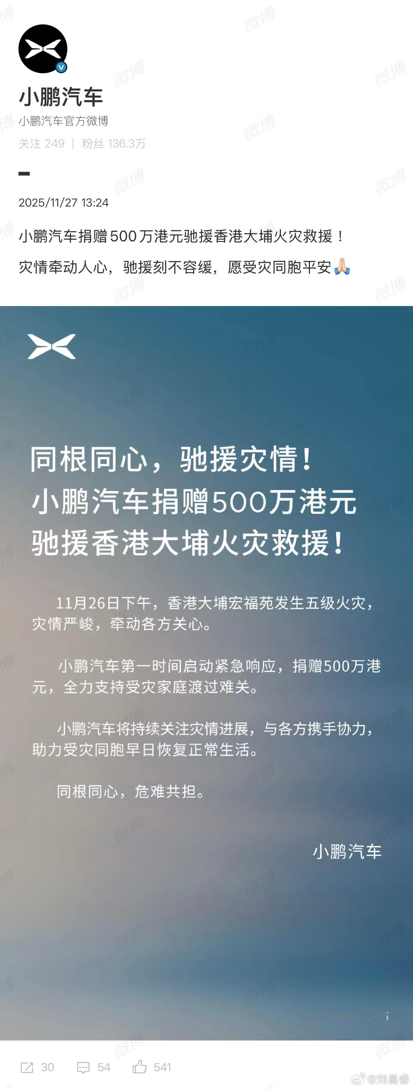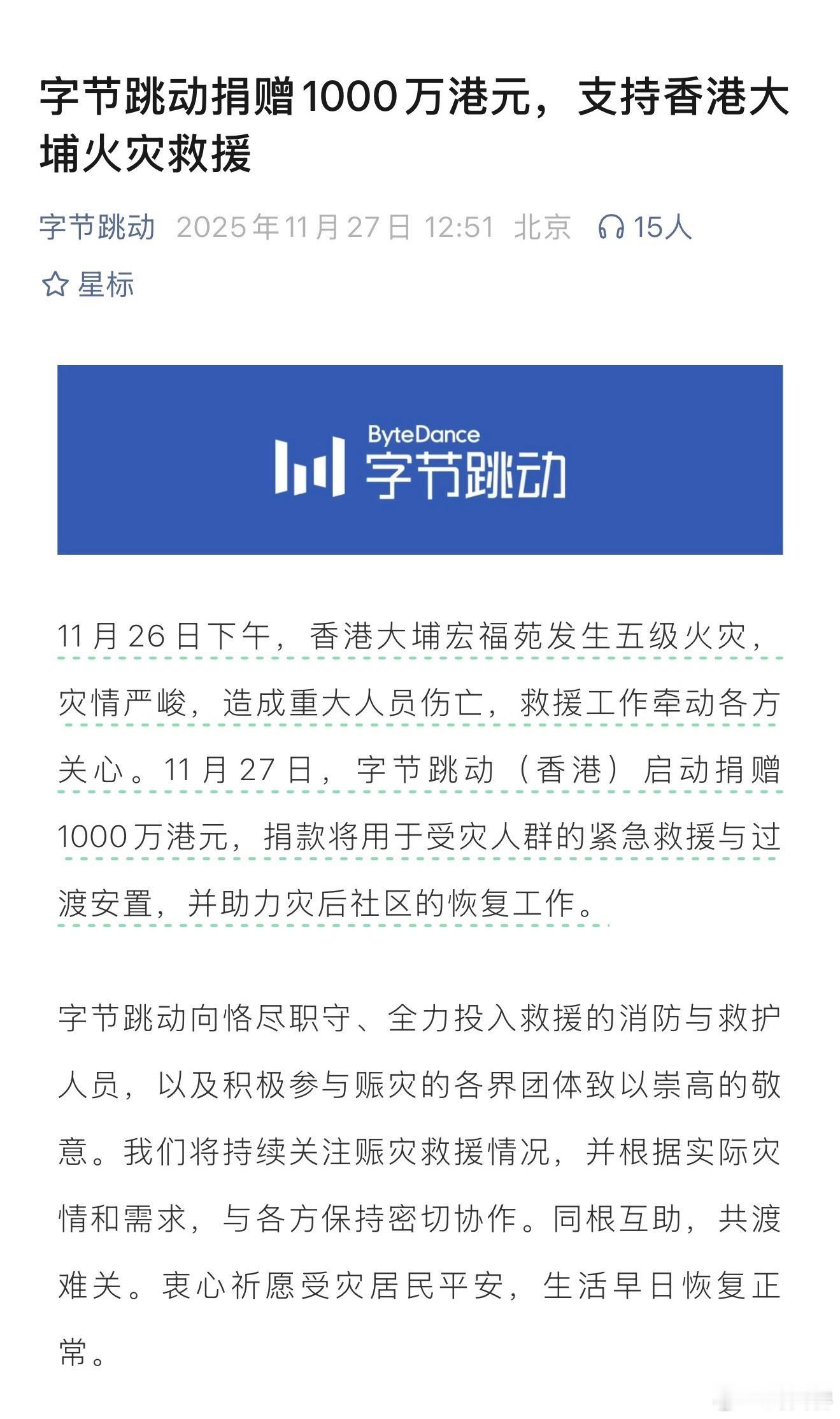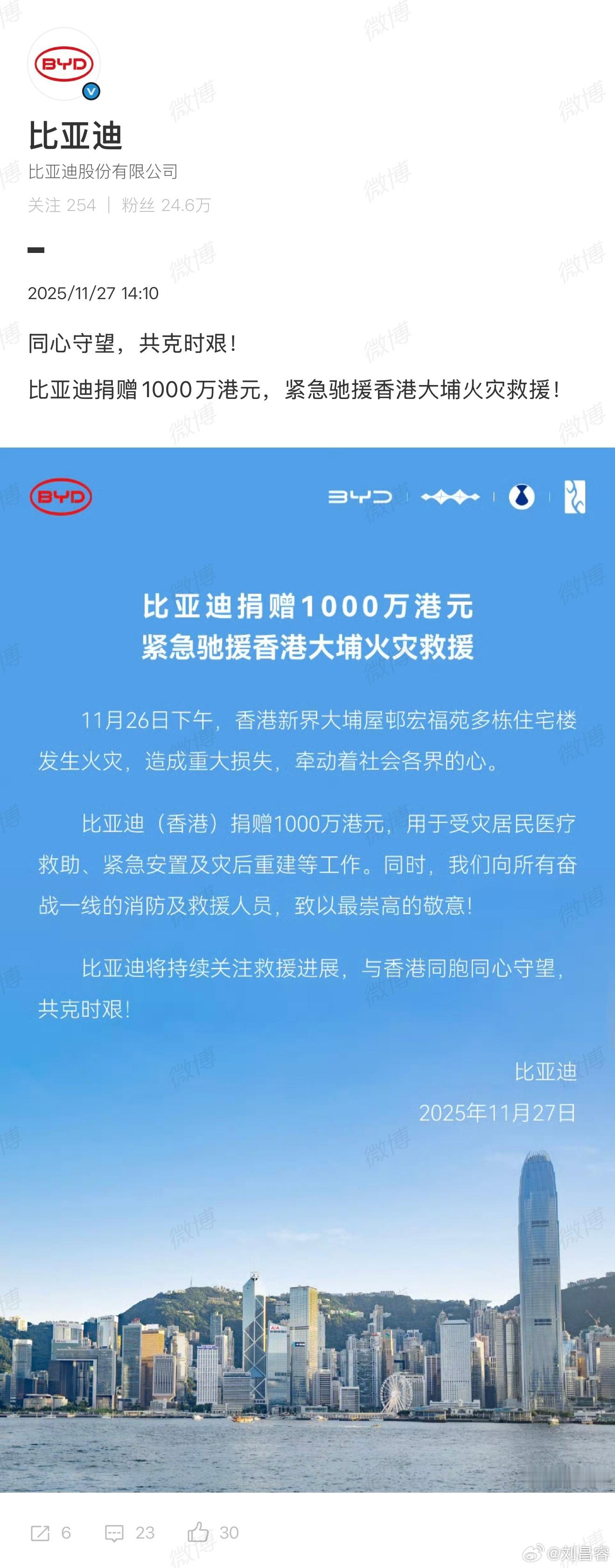 大量企业已经向香港进行了捐款(以下按时间排序)小米基金会 (7:59) 捐赠 1000 万港元腾讯基金会 (10:58) 捐赠 1000 万,后追加 2000 万字节跳动 (12:51) 捐赠 1000 万港元马云基金会 (12:57) 捐赠 3000 万港元,阿里集团捐赠 2000 万港元、菜鸟调动应急物资等小鹏汽车 (13:24) 捐赠 500 万港元比亚迪集团 (14:10) 捐赠 1000 万港元网易集团 (14:17) 捐赠 1000 万港元美的集团 (15:45) 捐赠 1000 万港元顺丰集团 (16:55) 捐赠 2000 万、免费提供物资运输当然 这些只是捐赠了的小部分企业,而小米是所有企业里最早的,估计是凌晨就完成决策了9 家企业有 6 家来自广东(腾讯、小鹏、比亚迪、网易、美的、顺丰)毕竟香港受灾,广东企业更能感同身受向所有参与捐款的企业表达感谢,也希望能有越来越多的企业帮助受灾群众渡过难关!
