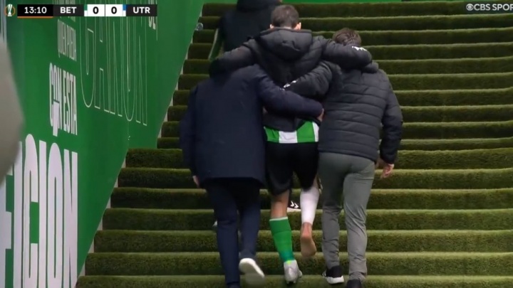 伊斯科伤情看起来不乐观,他无法自己行走,被工作人员架出了场外。