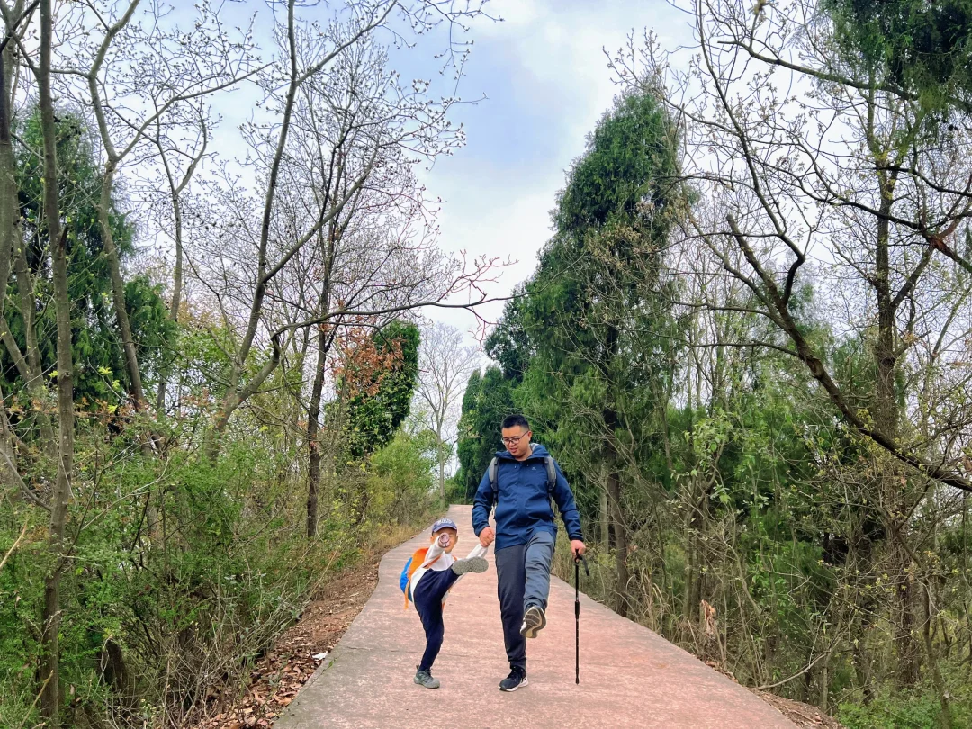 ✅徒步路线:有两条上山路线(左上右下↘️,右上左下)我们选择的左上右下,很轻松,大部分都是水泥路➕石阶,很好走!小朋友最后还说没有爬够,一路上超多的植物,植被覆盖率高,❀不仅可以看美景,呼吸新鲜空气,还可以欣赏桃花,梨花🌸,油菜花,真的很舒服呀
