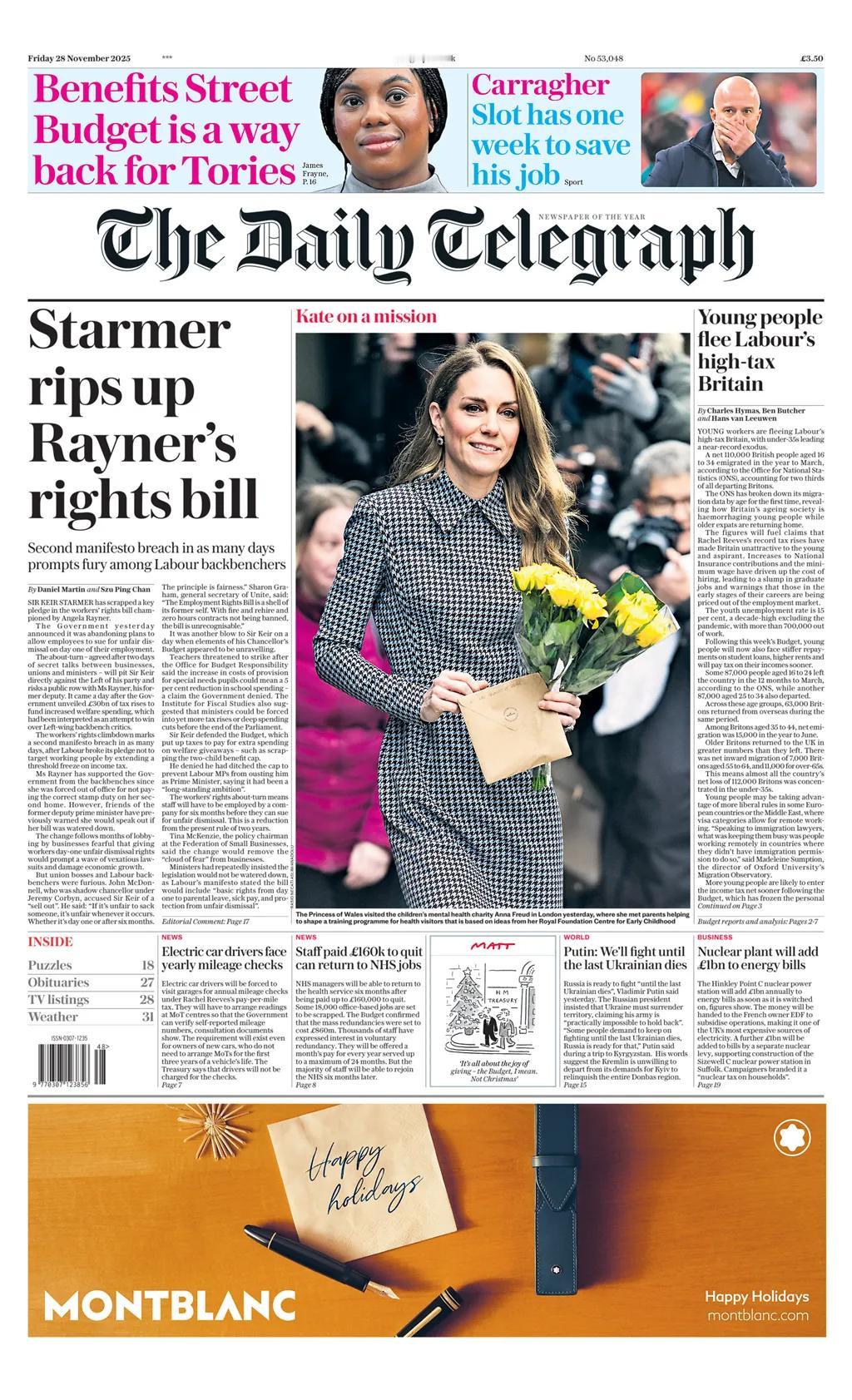 《每日电讯报》头版报道称,英国年轻人逃离工党治下的高税收英国 。 英国年轻工人正在逃离工党治下高税收的英国,35岁以下人群引领了一场近乎创纪录的人口外流。 国家统计局首次按年龄对移民数据进行了细分,揭示了英国老龄化社会如何在流失年轻人,而年长的侨民正在回国。 在35至44岁的英国人中,截至今年6月的一年里净移民人数为1.5万。 这意味着英国净流失的11.2万英国人几乎都集中在35岁以下人群。截至今年3月的一年中,有净11万年龄在16至34岁的英国人移民海外。 根据国家统计局(ONS)的数据,这占所有离开英国人口的三分之二。 这些数据将加剧人们的说法,即英国财政大臣瑞秋·里夫斯创纪录的增税举措让英国对年轻人和有抱负者缺乏吸引力。国民保险缴款和最低工资的提高推高了雇佣成本,导致毕业生就业岗位大幅减少,并有警告称处于职业生涯早期阶段的人因过高成本而被挤出就业市场。 青年失业率为15%,这是除疫情期间外十年来的最高水平,有超过70万人失业。 在本周的预算案之后,年轻人现在还将面临学生贷款还款压力加大、租金上涨,并且更早就要开始缴纳所得税。 根据国家统计局的数据,在截至今年3月的12个月里,约有8.7万年龄在16至24岁的人离开了英国,另有8.7万年龄在25至34岁的人也离开了。 在这些年龄组中,同期有6.3万英国人从海外返回。 年龄较大的英国人回国的人数超过了出国的人数。55至64岁的英国人有7000人的净回国移民,65岁以上的有1.1万人。 年轻人可能在利用一些欧洲国家或中东地区更为宽松的规定,这些地区的签证类别允许远程工作。牛津大学移民观察站主任玛德琳·萨姆普申说:“与移民律师交谈时,让他们忙碌的是那些在没有移民许可的国家远程工作的人。” 预算案之后,更多年轻人可能更早进入所得税缴纳范围,预算案冻结了个人所得税起征点。