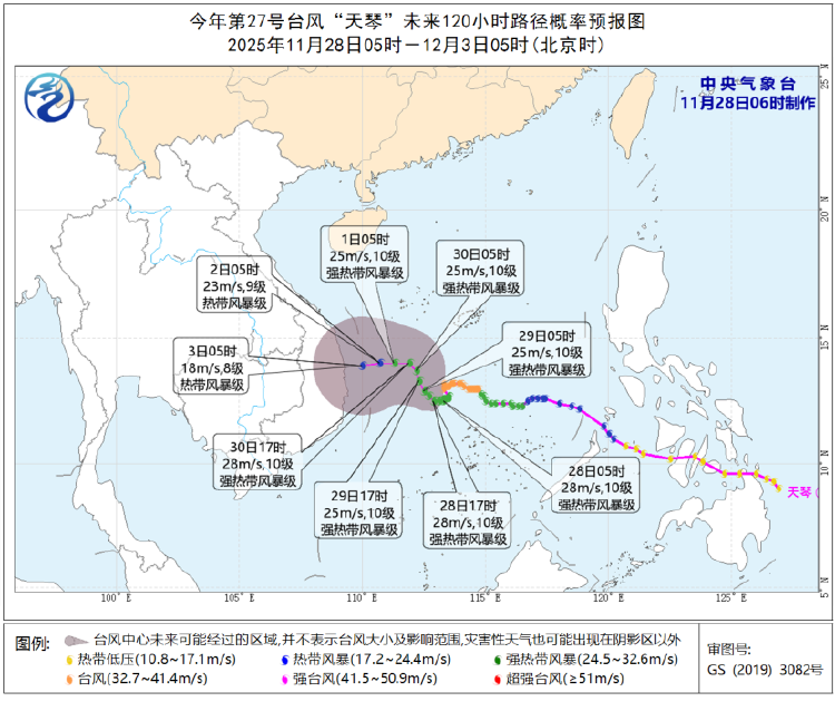 中央气象台11月28日06时继续发布台风蓝色预警: