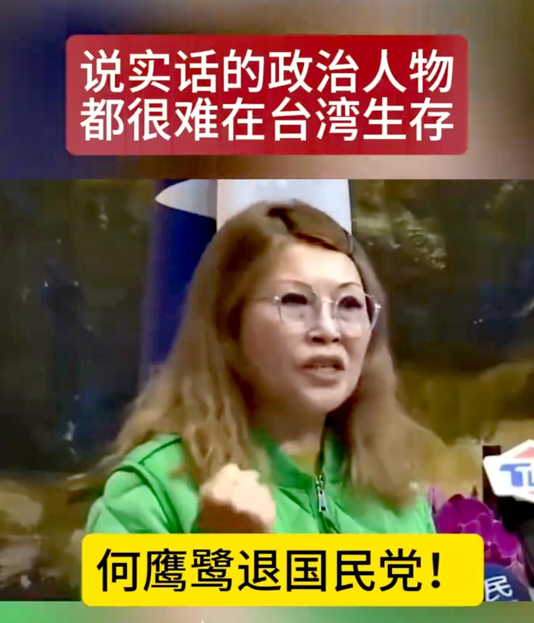 陆配中常委穿绿衣怒退国民党!怼得郑丽文哑口无言,这波操作太刚了 国民党中常会直接开成“大型拆台现场”!陆配出身的中常委何鹰鹭一袭绿外套到场,当场宣布退党,把郑丽文怼得半天说不出话,连党内最讳莫如深的痛处都敢戳,这股子冲劲直接让场面燃到失控! 要说这事儿的背景,可真是耐人寻味。如今的国民党,早就没了当年的立场风骨,反而学起了“骑墙术”——嘴上喊着反对“台独”,心里却对“统一”避之不及,既想讨好台湾民众,又想忽悠大陆方面,两头都想占好处,结果就是猪八戒照镜子,里外不是人。何鹰鹭作为支持和平统一的统派,之前就因为敢说真话被国民党考纪会撤职,这次中常会算是新仇旧恨一起算,直接带着“战袍”来正面硬刚。 会议一开始,郑丽文看着何鹰鹭的绿外套,满脸疑惑地问她怎么穿得这么绿。谁料何鹰鹭眼神一凛,怼得又快又狠:“变绿了!” 这三个字听着像玩笑,实则刀刀见血,明晃晃讽刺国民党表面一套背后一套,嘴上喊着支持统一,背地里净搞些暧昧操作,全是自欺欺人的表面功夫。 接下来的灵魂拷问更是招招致命,听得在场人都大气不敢出。何鹰鹭拍着桌子质问:“国民党去大陆张口闭口‘台湾地区’,这到底是中华人民共和国的地区,还是你口中‘中华民国’的地区?” 这话直接戳破了国民党“两头骗”的真面目,吃相难看不说,连基本的立场都站不稳。她还转头盯着郑丽文,火力全开:“你竞选时喊得比谁都响,说‘我们都是中国人’,现在倒好,反过来打压我们这些统派,这不是自相矛盾吗?” 紧接着她抛出全场最狠的质问:“民进党敢明目张胆喊‘台独’,你们国民党为啥连‘统一’两个字都不敢说出口?” 这话可真是说到了点子上!何鹰鹭还没停,继续追问全场:“真要是因为‘台独’闹得打起来,台湾老百姓能有好日子过?能安全吗?能幸福吗?” 这些全是国民党常年回避的现实问题,平时没人敢当面拆台,偏偏何鹰鹭就敢撕开这层遮羞布。 最后她当场宣布退党,直言不讳地说,退党就是抗议党内对统派的不公——打压支持统一的人,却对“台独”倾向睁一只眼闭一只眼。与其在这样的党内憋屈,不如退党后自由联合统派力量,好好和大陆沟通,为两岸和平统一尽一份力。老话说得好,“宁为玉碎,不为瓦全”,何鹰鹭这份敢说真话、敢做实事的勇气,在如今的国民党内真是凤毛麟角。 不得不说,何鹰鹭这波操作太解气了!她就像一把利剑,戳破了国民党的虚伪面具,也让更多人看清了某些政客“骑墙观望”的真面目。两岸统一是大势所趋,民心所向,任何企图模糊立场、两头讨好的做法,最终只会被历史抛弃。何鹰鹭的退党或许不能立刻唤醒摆烂的国民党,但至少让更多人敢于站出来发声——为了两岸和平,为了台湾民众的切身利益,该表态时就得果断表态,该硬气时就得绝不妥协!