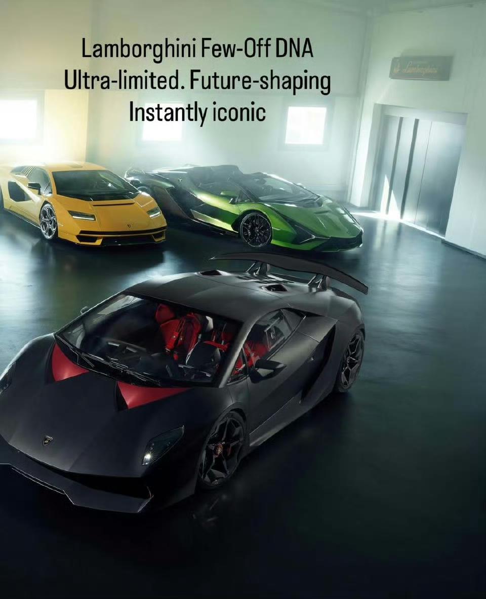 Lamborghini “FEW-OFF” DNA 超限量 来自🇨🇭兰博基尼收藏家 Albert Spiess(阿尔伯特·斯皮斯)的顶级收藏,从他第一台1979年的 Countach LP400 S 开始至今。自2007年以来,Sant'Agata 一直使用超限量系列,使用最新的设计和超强的技术,并将其转化为现实,瞬间成为传奇。 2007 Lamborghini Reventón 2010 Lamborghini Sesto Elemento 2013 Lamborghini Veneno Roadster 2017 Lamborghini Centenario 2019 Lamborghini Sián FKP 37 Roadster 2021 Lamborghini Countach LPI 800-4