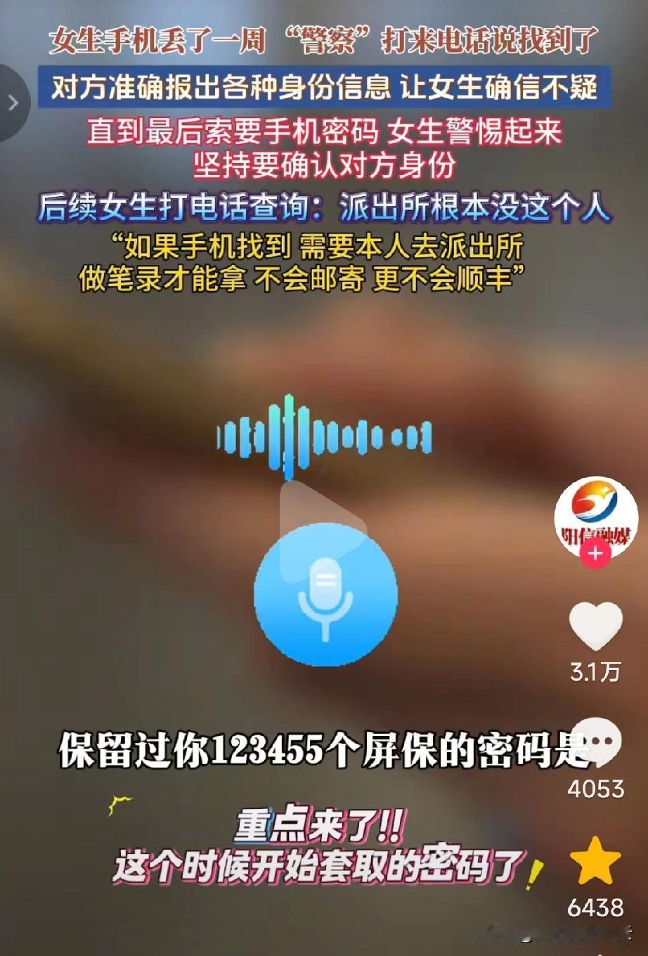 看到一个新型骗局,很容易就中招。女子去西安玩时,丢了一部苹果手机,她报警后,警方