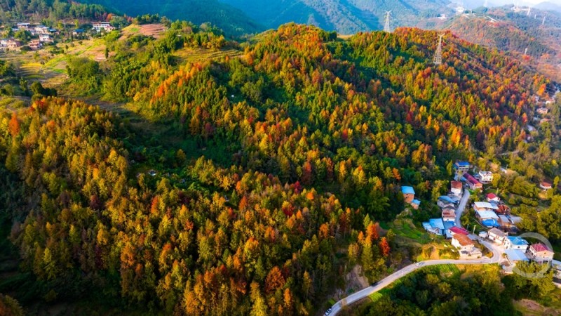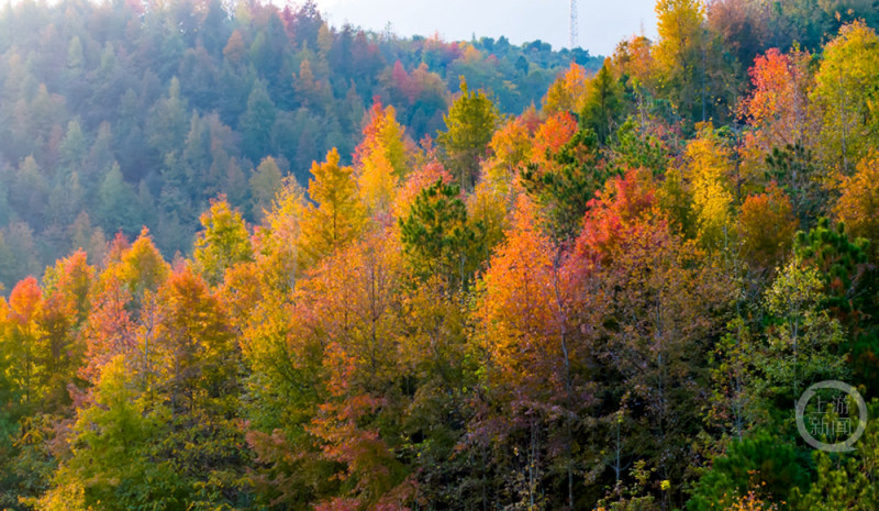 据了解,当地彩林以枫香、乌桕等为主,如今已值最佳观赏期。