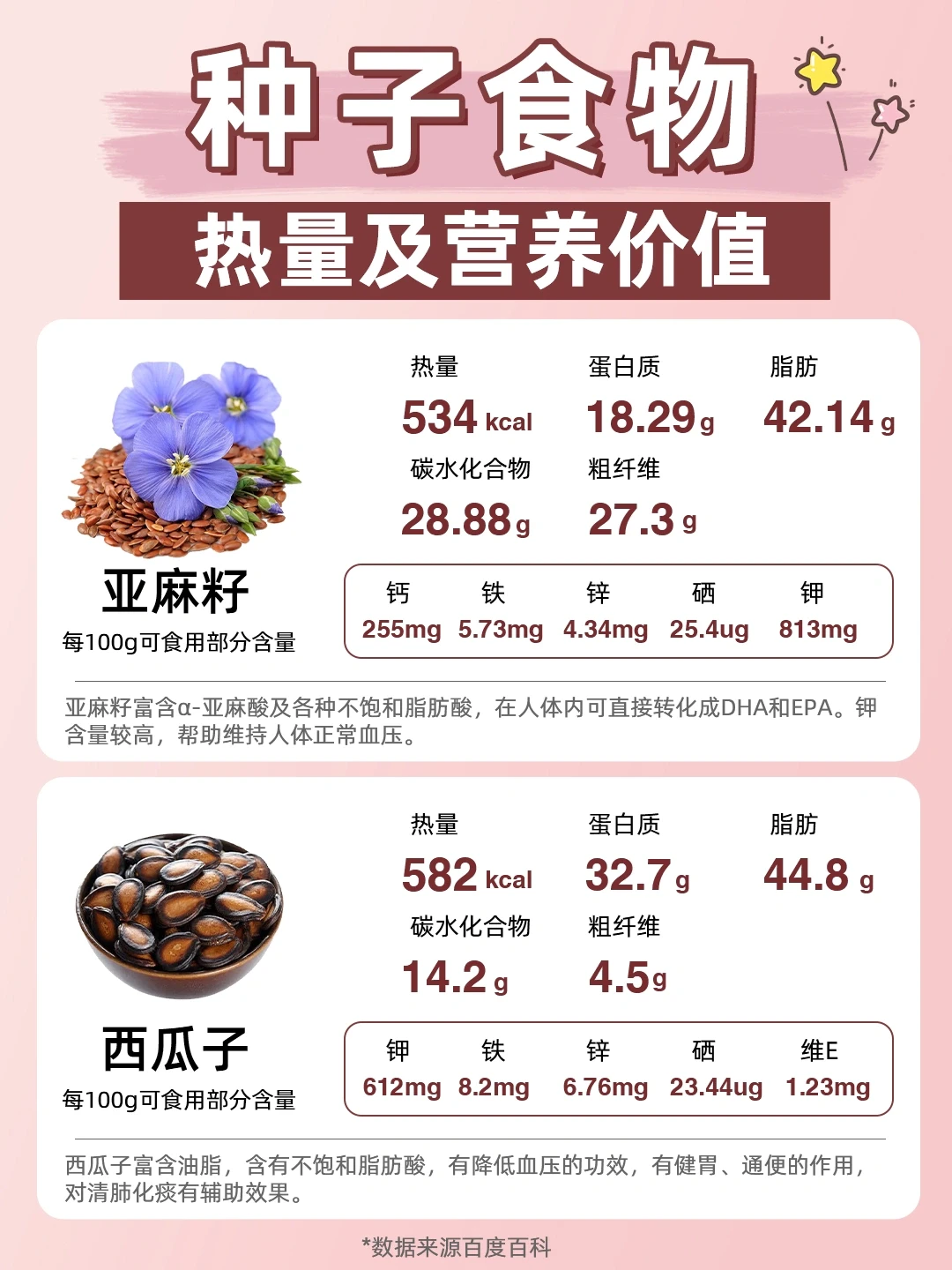 种子是一种营养价值很高的食品,这些富含營養的超級食物,可以适量为人体补充营养。还是要因人而异,不能过量哦️