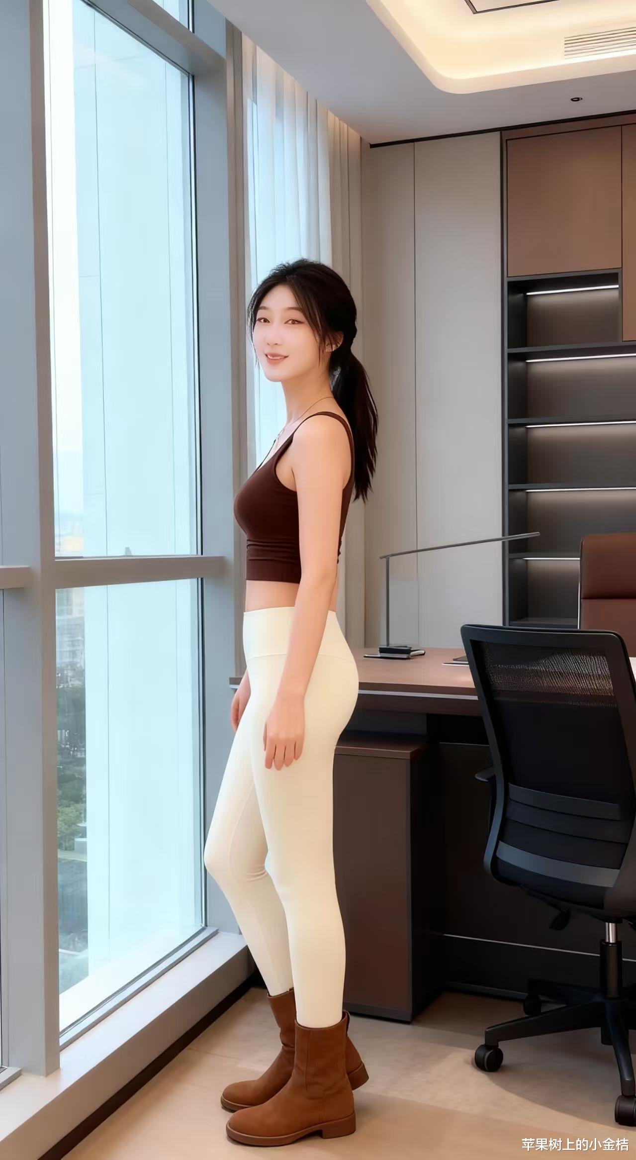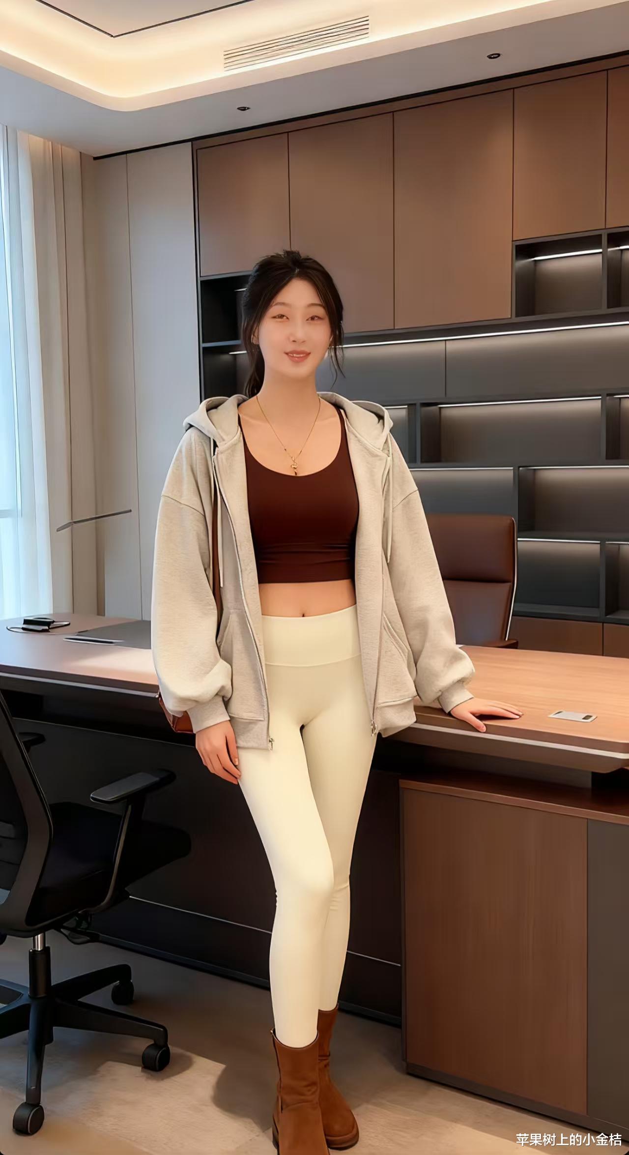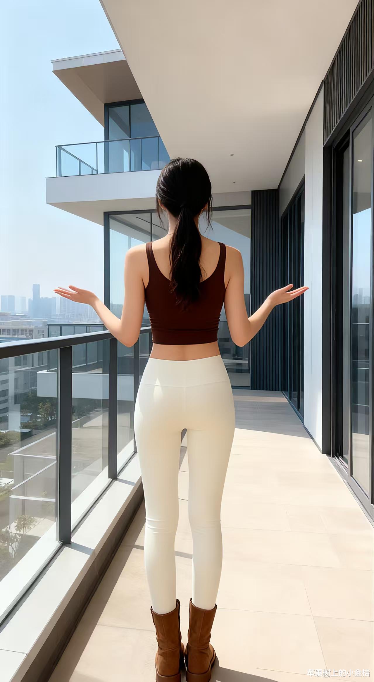 休闲运动风穿搭分享,深棕色吊带上衣搭配运动紧身裤。